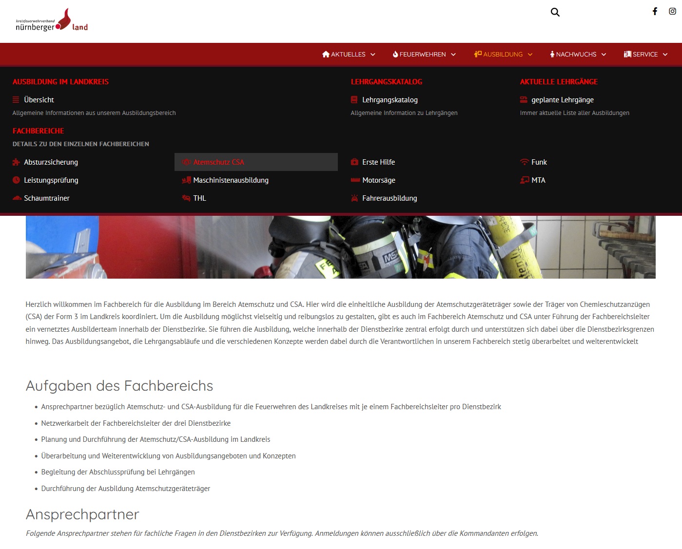 Neu ist auch die Gestaltung des Ausbildungsbereiches. Hier sind nun erstmals alle Fachbereiche der Ausbildungsinspektion mit Ansprechpartnern präsentiert. Zusätzlich gibt es eine Übersicht über angebotene und geplante Aus- und Fortbildungen.