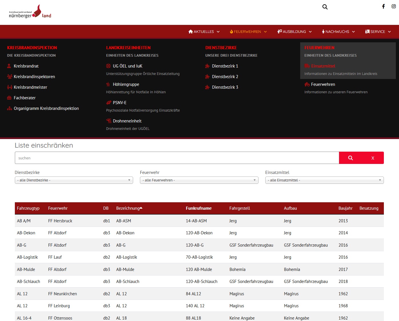 Auch die sozialen Medien sind bei KFV-Online nun weiter in den Fokus gerückt. So ist nun nicht mehr nur die Website unserer Feuerwehren im Landkreis verlinkt, sondern auch Auftritte bei Facebook und Instagram. Dadurch hat man alle Infos zu den Wehren auf einen Blick. Natürlich sind, für alle, die sie noch nicht kennen, die Facebook- und Instagramm-Auftritte des Kreisfeuerwehrverbandes ebenfalls verlinkt.