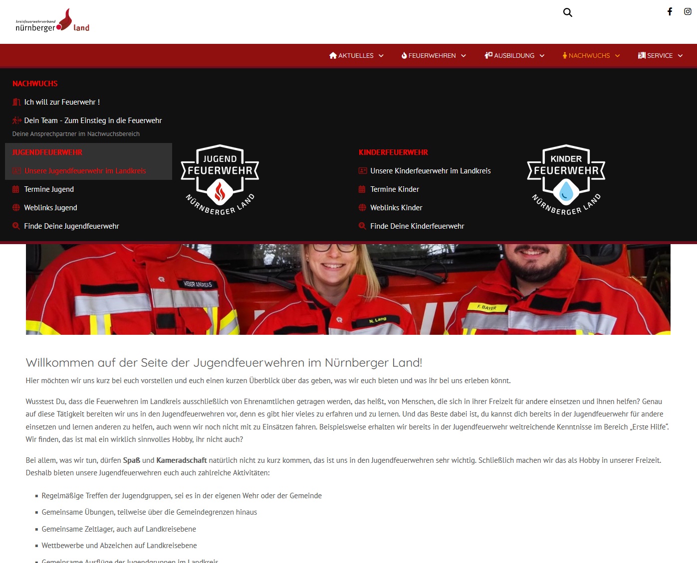 Im Bereich der Jugend sind nun neben den Jugendfeuerwehren auch die Kinderfeuerwehren mit Ansprechpartnern vertreten. Den Weg zu den Jugendgruppen findet man entweder über die Wehren selbst oder über den Jugendbereich.