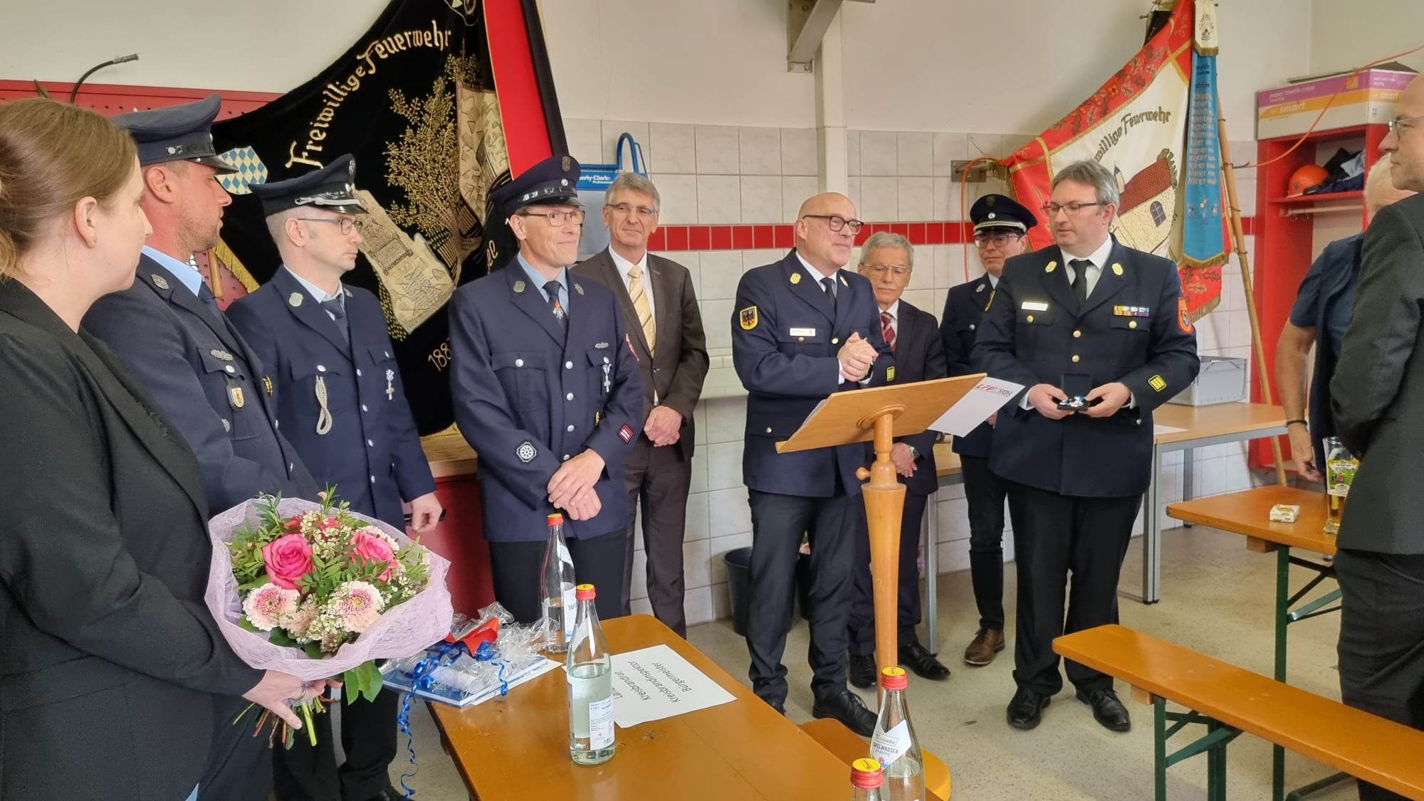 Eine besondere Ehrung nahm der Kreisbrandrat vor. Wolfgang Prosche von der FW Neuhaus erhielt das Feuerwehr-Ehrenkreuz in Silber für besondere Leistungen des Landesfeuerwehrverbands.