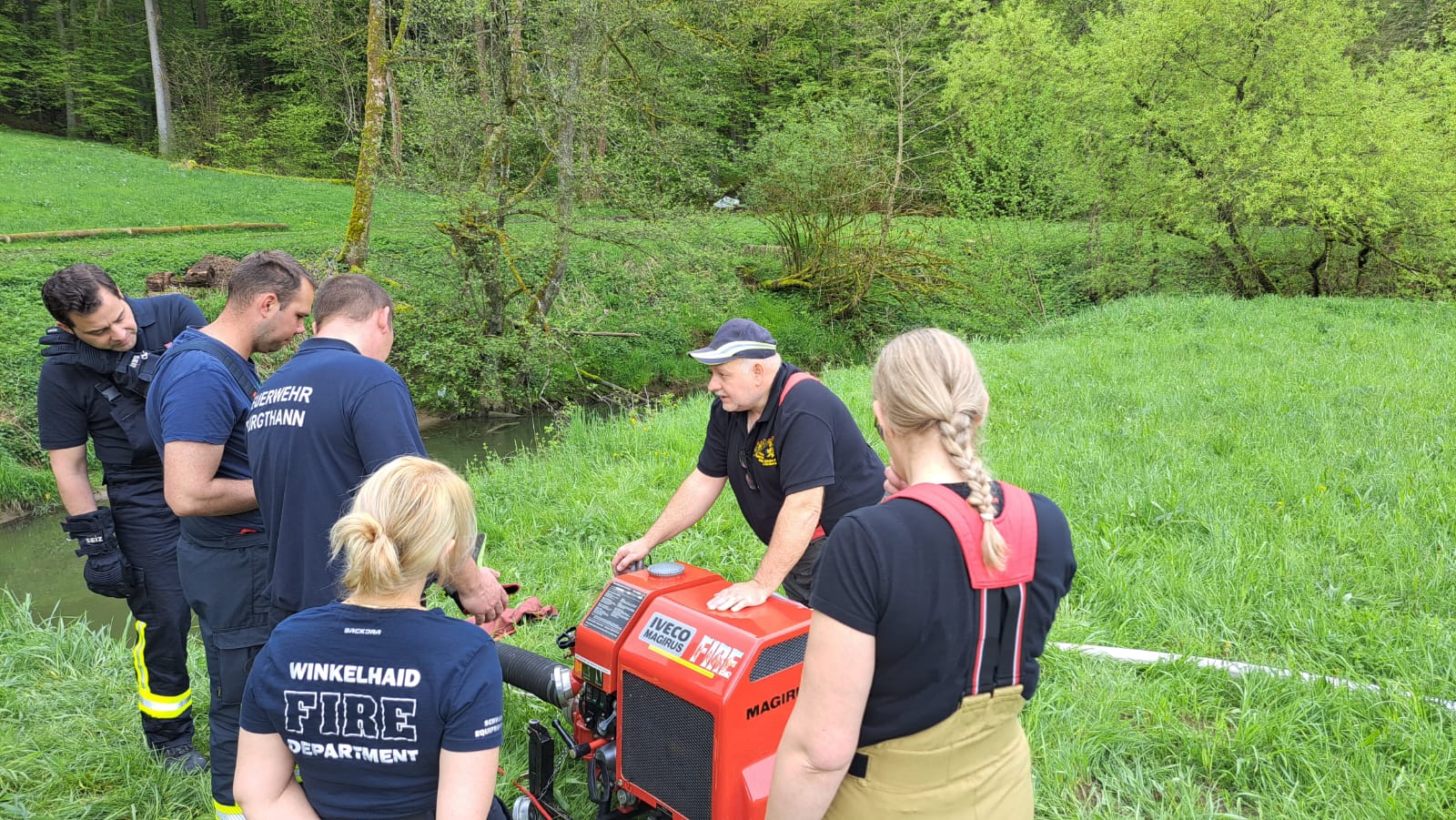 Nach einer theoretischen Prüfung ging es nun an die Praxis. Wasserförderung über eine lange Schlauchstrecke mit vielen zu überwindenden Höhenmetern stand auf dem Prüfungsplan. Alle Lehrgangsteilnehmer zeigten, was Sie in den letzten Wochen gelernt hatten, und meisterten die Prüfungsaufgaben. Am Ende stand fest, alle haben den Lehrgang mit Erfolg abgeschlossen. Die Teilnehmerinnen und Teilnehmer sind nun berechtigt, den Titel „Maschinist für Tragkraftspritzen und Löschfahrzeuge“ zu führen.