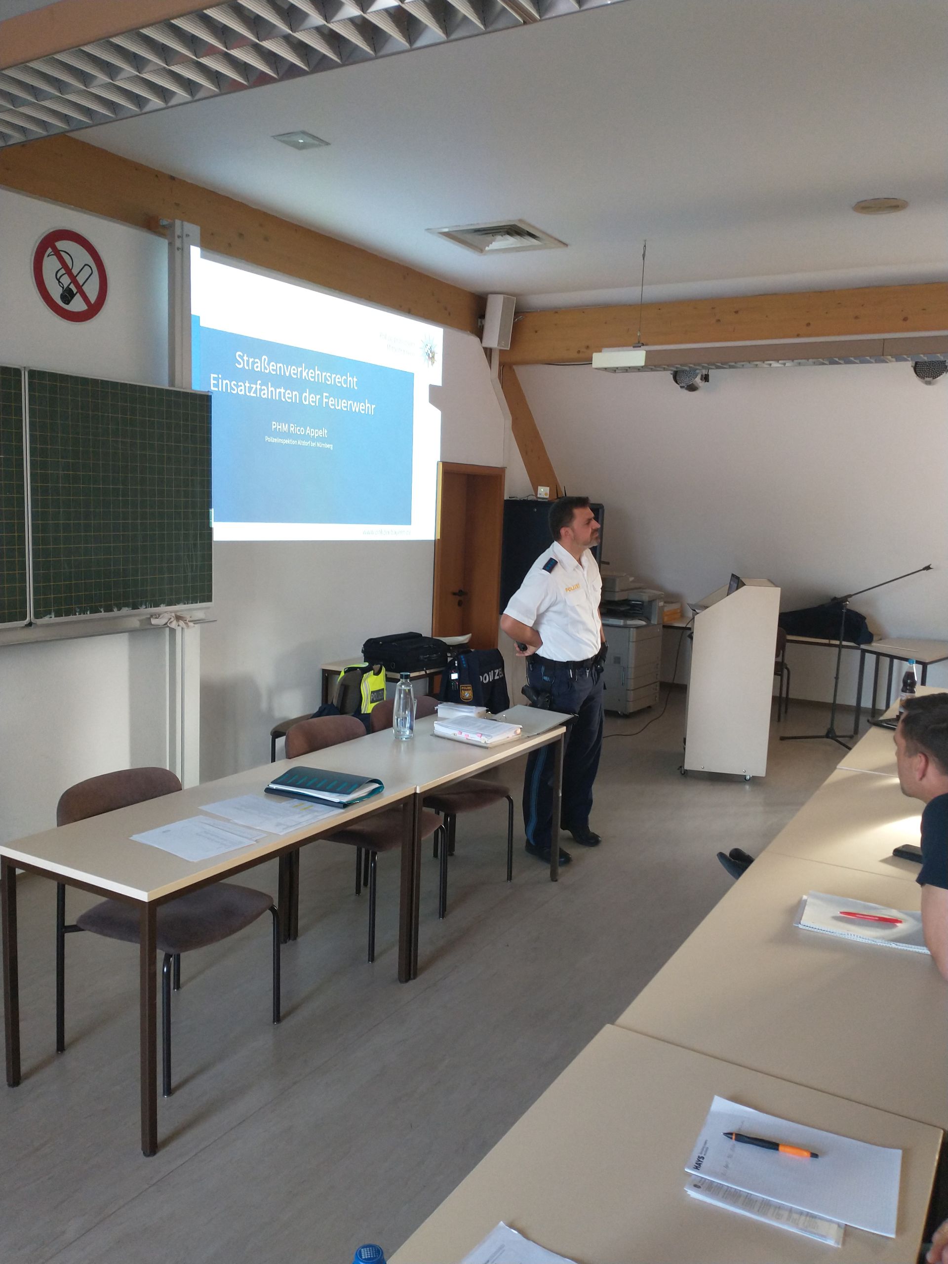 Wie bei jedem Maschinistenlehrgang in Altdorf, unterstützte uns wieder die Polizeiinspektion Altdorf bei den Themen Straßenverkehrsordnung, Sonderrechte und Wegerechte.