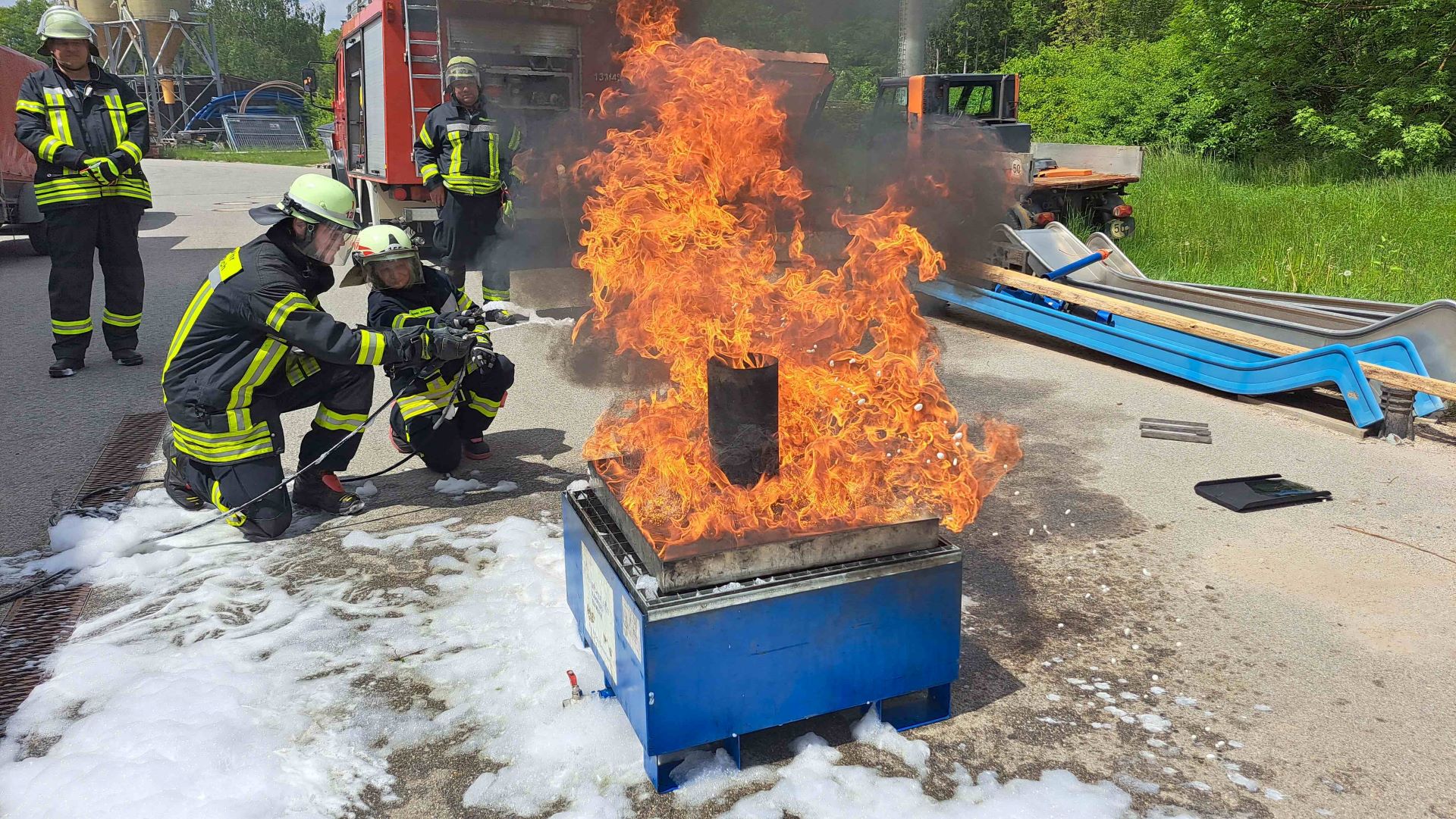 Am 20. Mai konnten 15 Teilnehmer aus verschiedenen Wehren aus dem DB 3 wieder am Schaumtrainer der Landkreiswehren ausgebildet werden. Die Aktiven konnten bei dieser „heißen“ Ausbildung den effektiven und koordinierten Einsatz von Schaummittel sowie den korrekten Einsatz der unterschiedlichen Schaumarten erlernen.
