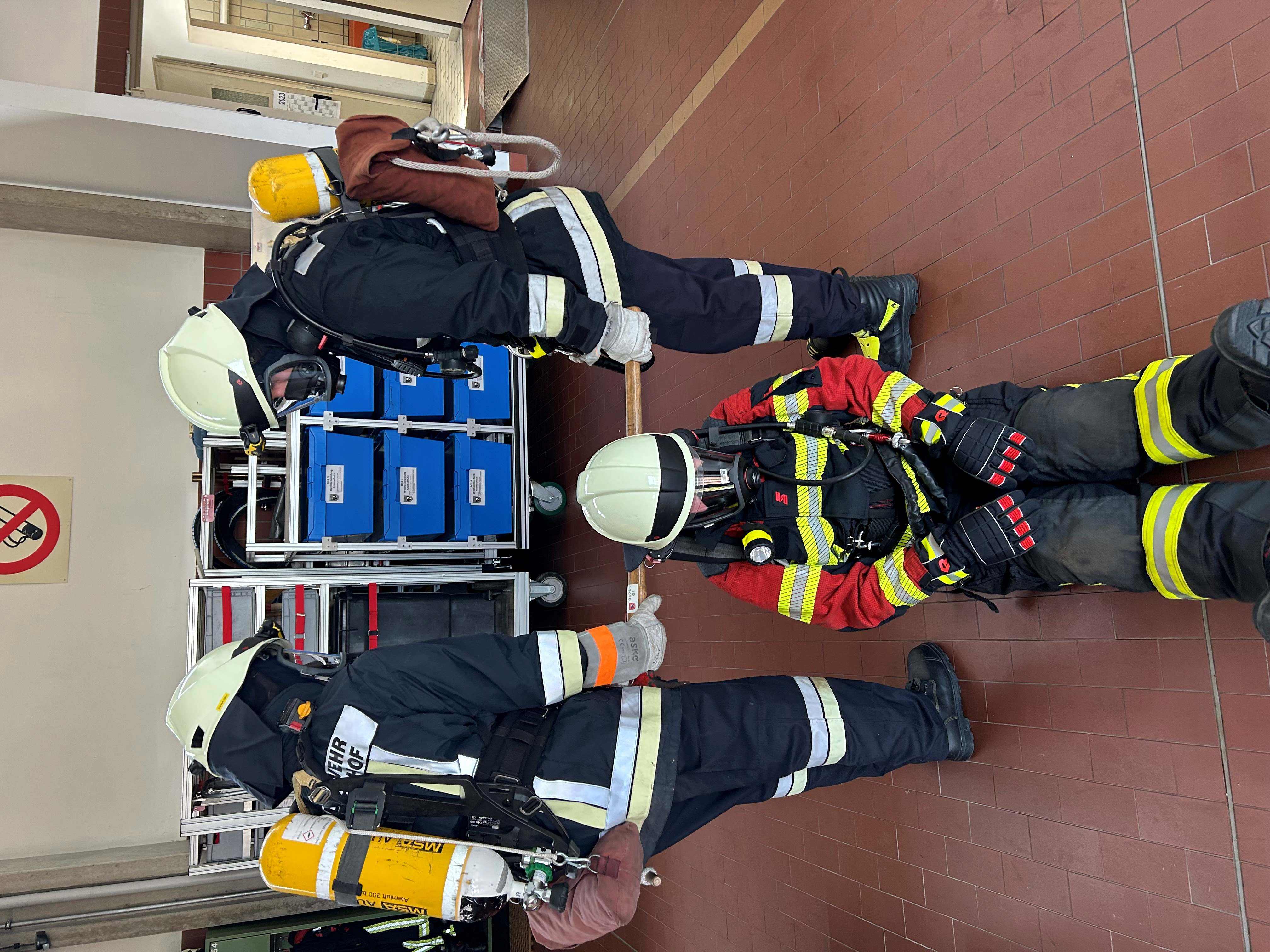 Großer Wert wurde bei der Ausbildung auf den richtigen Umgang mit den Atemschutzgeräten selbst gelegt, die Ausbilder achteten stets auf das richtige Ausrüsten und darauf, dass dies bei den Übungen unter Beachtung der Einsatzgrundsätze zügig geschah.