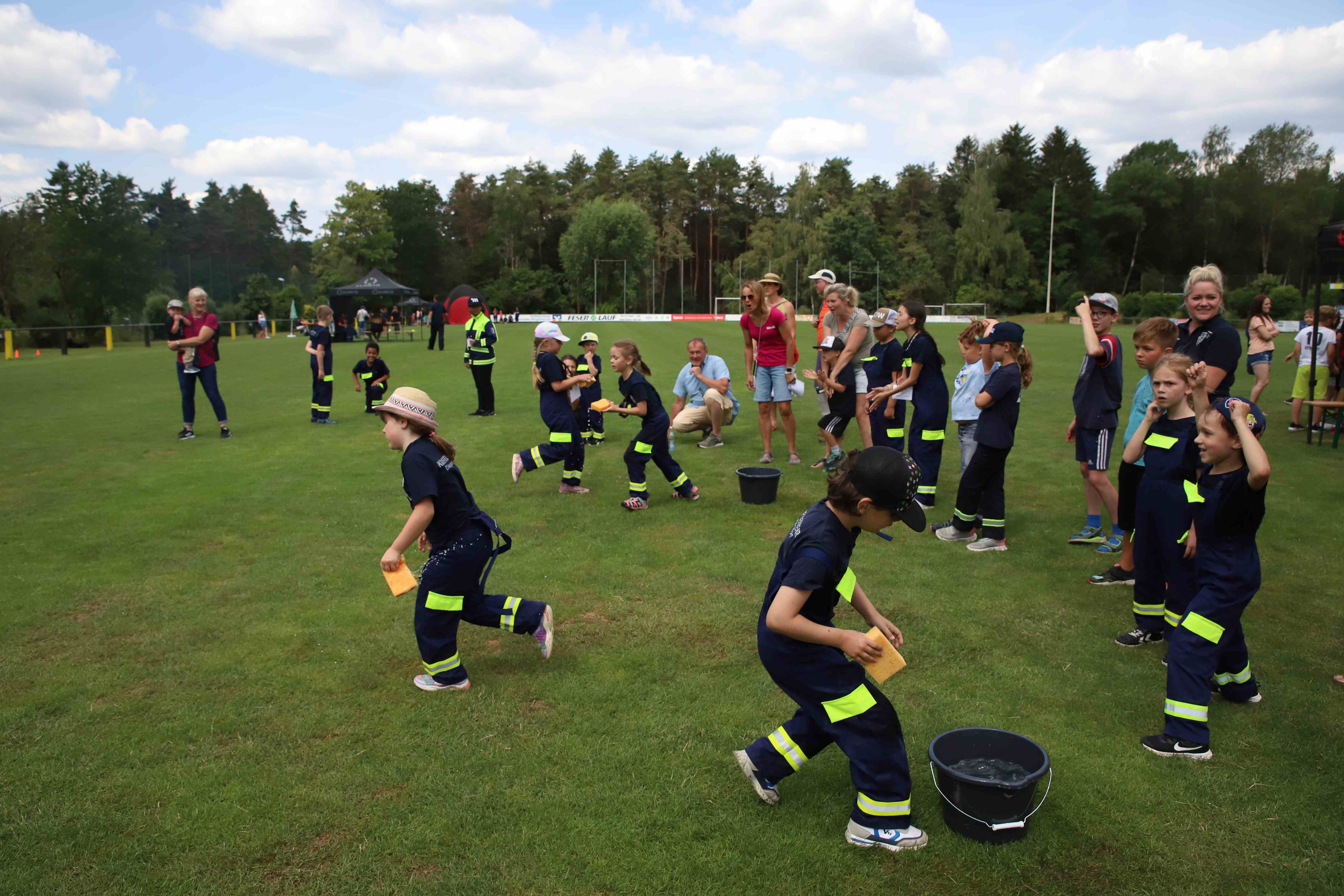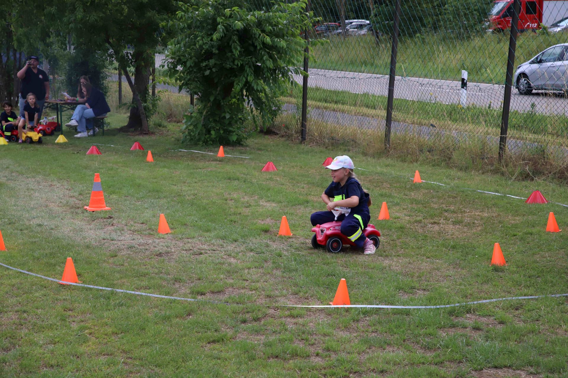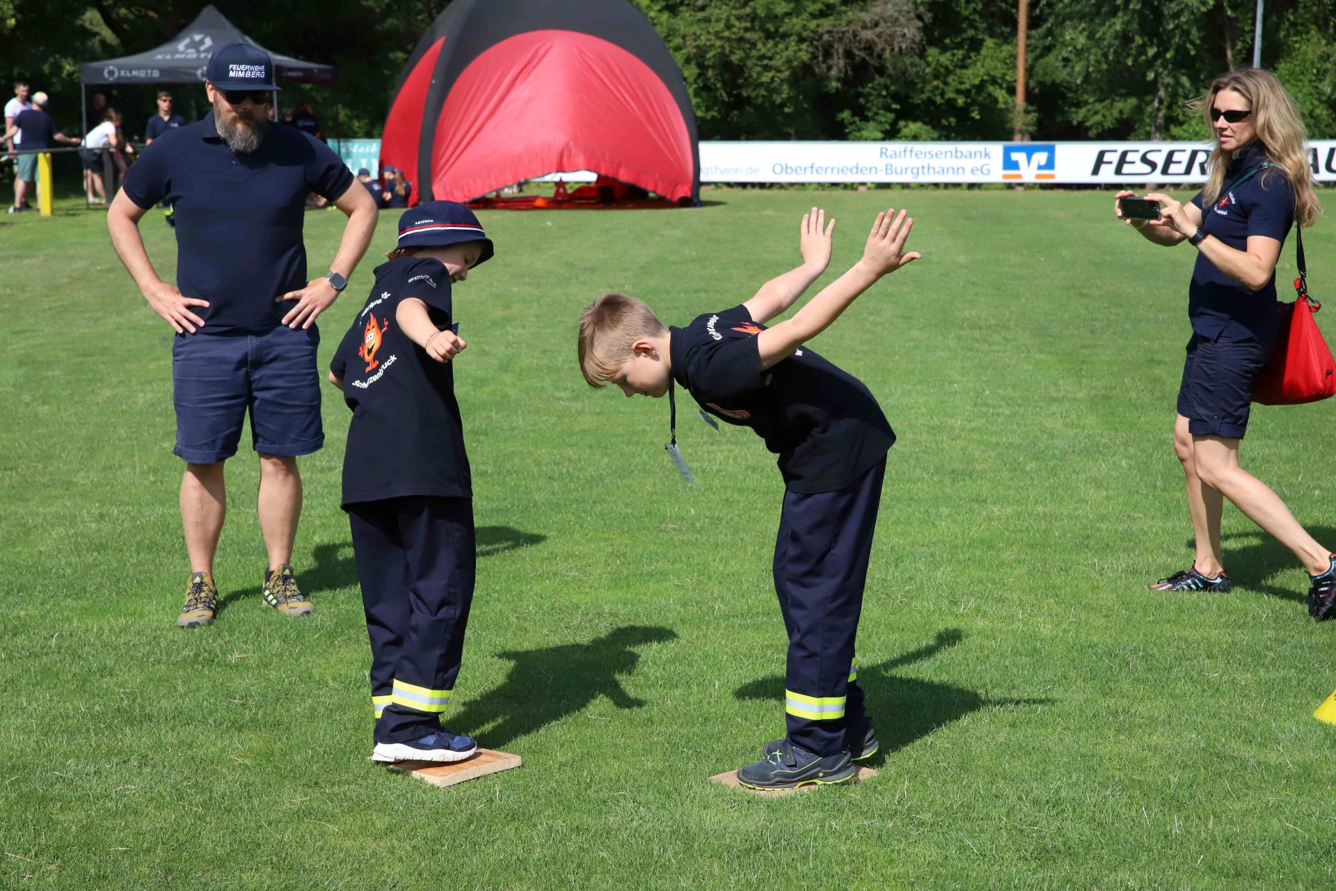 Dabei durften die Teilnehmer ihr Können bei den Spielen „Pusteball“, „Bobby Car Wettrennen“, „Dosenwerfen“, „Frisbeewerfen“, „Feuerwehr Memory“, „Der Boden ist Lava“, „Schätzen“ sowie bei „Schwammparty“ unter Beweis stellen. Gefragt waren bei den Spielen neben Geschicklichkeit und Geschwindigkeit auch Wissen und Teamarbeit.