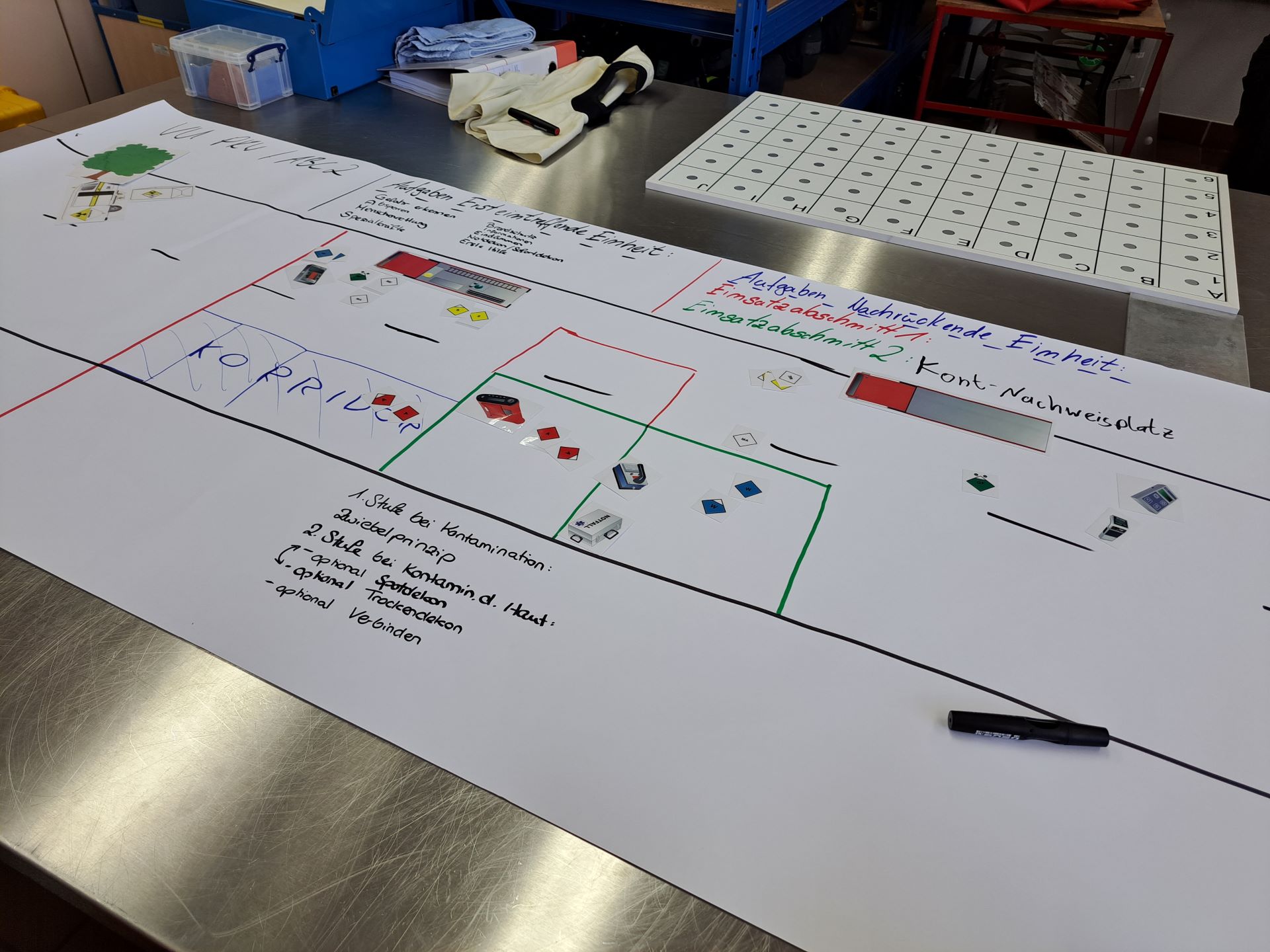 Die dritte Station hatte dann die Kennzeichnung und den Transport von Stückgut zum Thema. Auch hier wurden in Gruppenarbeit verschiedene Themen, wie die Kennzeichnung selbst, aber auch welche Strahlung auf der Außenseite nachweisbar sein kann, erarbeitet und anschließend vorgestellt.