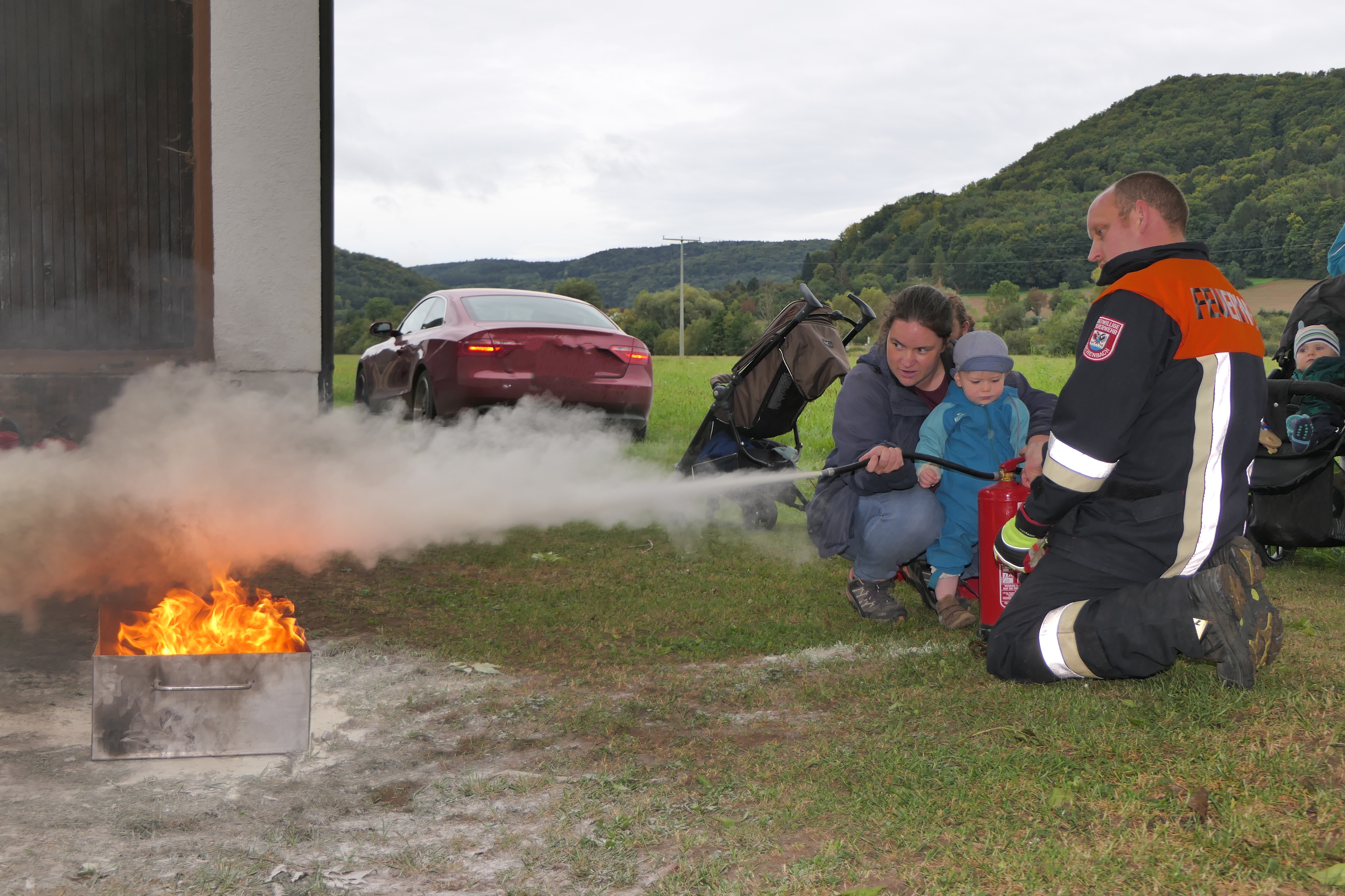 An einer weiteren Station konnten sich die Besucher über den Einsatz verschiedener Feuerlöscher informieren und diese ausprobieren. Erwachsene und Kinder waren überrascht darüber wie einfach die Bedienung der Löscher ist und wie effektiv sie bei Entstehungsbränden eingesetzt werden können.
