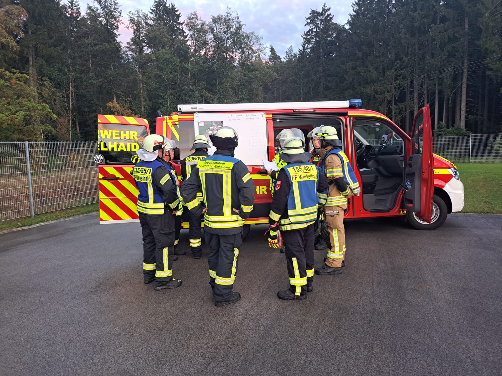 Winkelhaid (DB 3) - Am Samstag den 14.10.2023 führten die Feuerwehren Altenthann und Winkelhaid eine gemeinsame Einsatzübung in Winkelhaid durch. Angenommen wurde ein Kellerbrand im Gebäude der neuen Kläranlage in Winkelhaid.