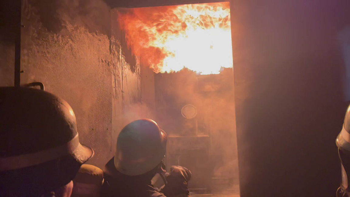 Eines der Highlights war der Besuch des Brandübungscontainers der Berufsfeuerwehr Nürnberg. Hier lernten die Teilnehmer den richtigen Umgang mit echtem Feuer und Hitze bekamen ein Gefühl für das Wirken der eigenen Schutzkleidung, die es ermöglicht, auch in brennenden Räumen bis zu 1.000 °C zu löschen. Auch eine Rauchgasdurchzündung wurde gezeigt und bekämpft.