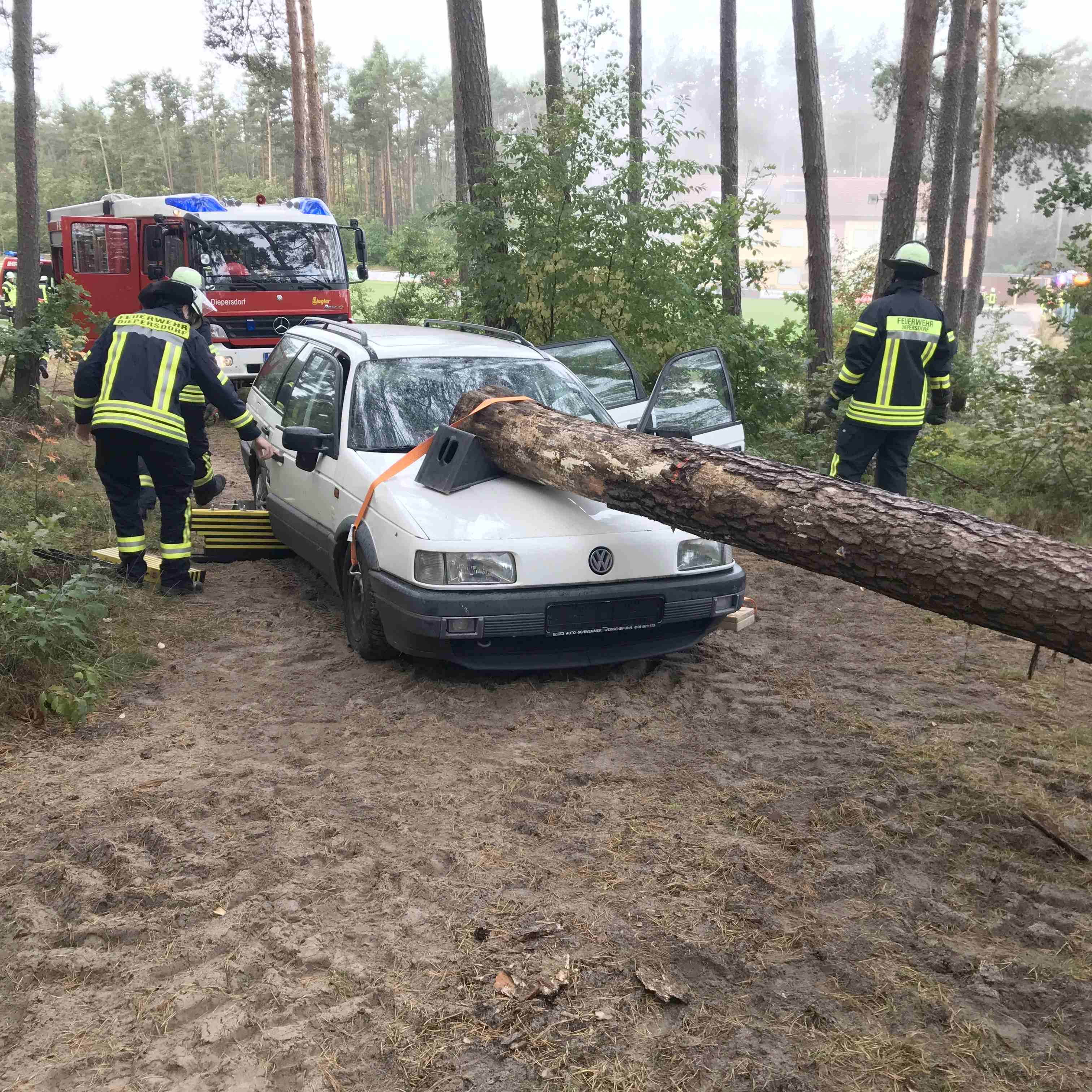 Einen angenommenen Verkehrsunfall, der sich parallel zum Brandereignis ereignet hatte, übernahmen die Einheiten aus Diepersdorf. Hier galt es eine eingeklemmte Person zu befreien sowie eine Person schonend aus dem PKW zu retten, auch eine vermisste Person musste gefunden werden.