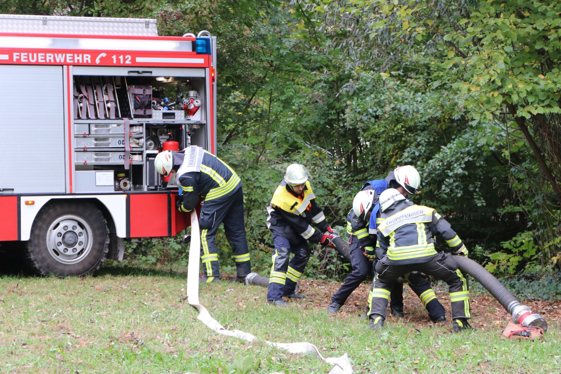 Happurg (DB1) - Zwei Gruppen der Freiwilligen Feuerwehr Happurg legten am Samstag den 21. Oktober 2023 erfolgreich die Leistungsprüfung für die Gruppe im Löscheinsatz ab.