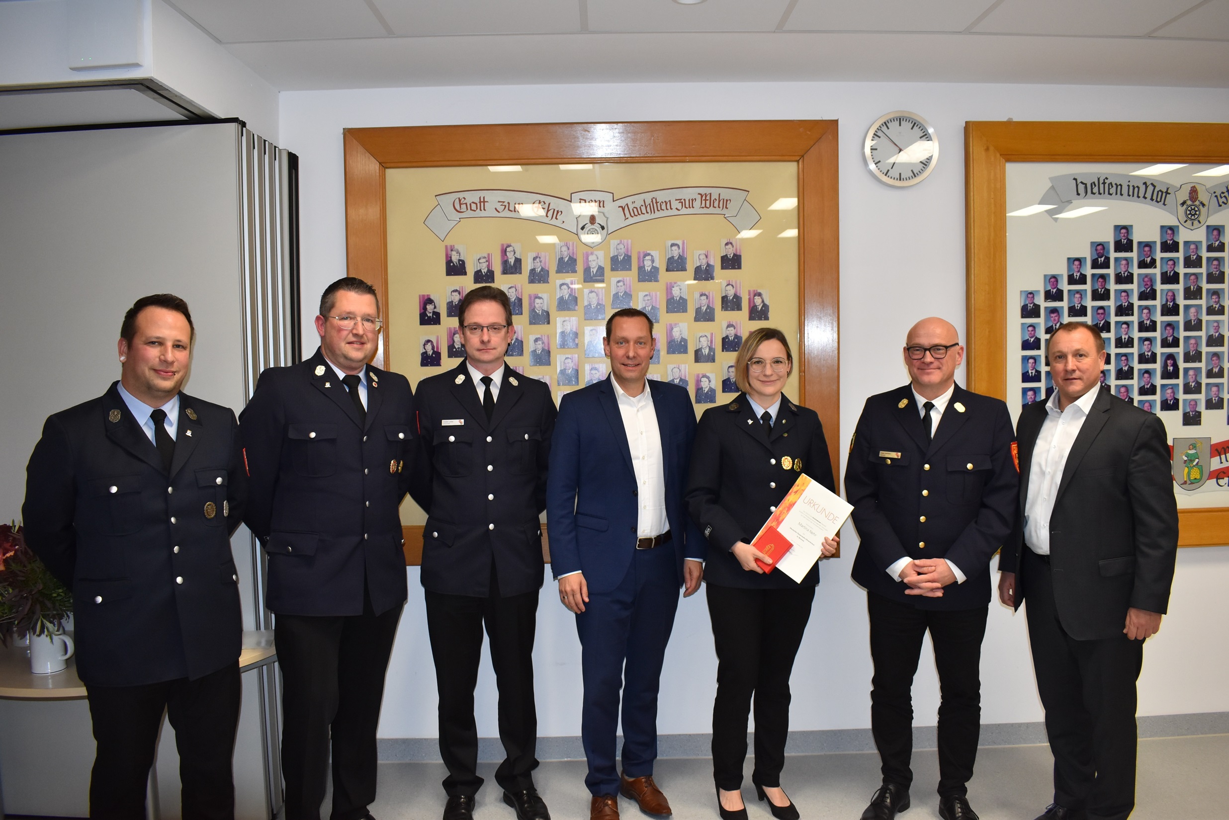 Im Anschluss hatte der Kreisbrandrat noch die große Freude, eine besondere Ehrung durchführen zu können und verlieh der Moosbacher Feuerwehrfrau Martina Nehr für ihre Tätigkeit als Frauenbeauftragte des Landkreises das Feuerwehr-Ehrenkreuz in Bronze des Deutschen Feuerwehrverbrands.