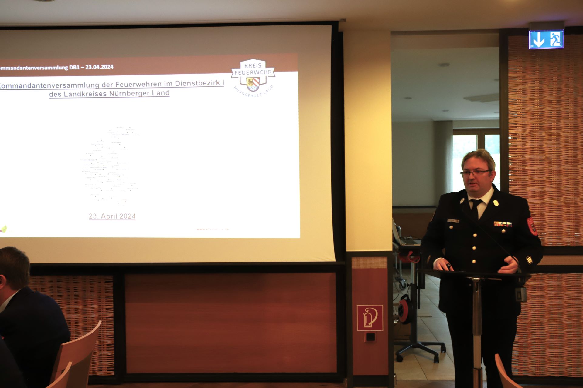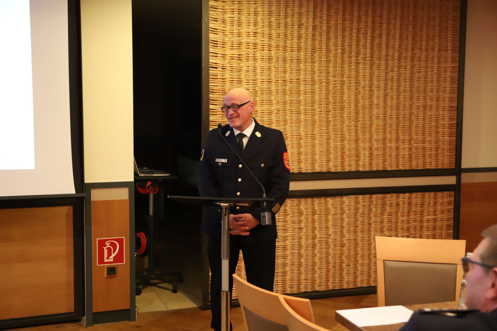 Kreisbrandrat Holger Herrmann gab im Anschluss aktuelle Informationen zu Beschaffungen und wichtigen Themen. Gerade im Bereich der Beschaffungen konnte er sehr erfreuliche Neuigkeiten überbringen, denn erst vor kurzem wurden die aktuellen Planungen durch den Kreistag beschlossen und können nun in Angriff genommen werden. Er betonte, dass es sich hier um dringend nötige Ausrüstung für den Bevölkerungs- und Katastrophenschutz handelt. Dadurch sind die Feuerwehren künftig noch besser für die Herausforderungen des sich wandelnden Einsatzgeschehens gerüstet.