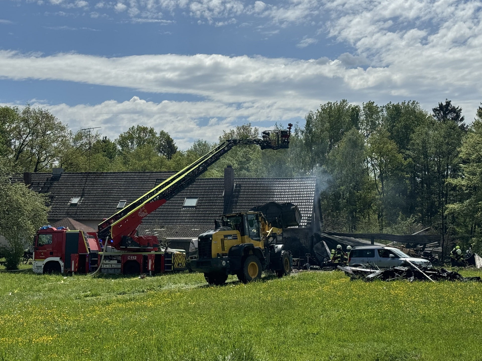 Zu einem bemerkenswerten Einsatz wurde am 02.05.2024 um 10:28 Uhr die Feuerwehr Altdorf mit dem Stichwort "brennt Anbau mit Holzhaufen" alarmiert.