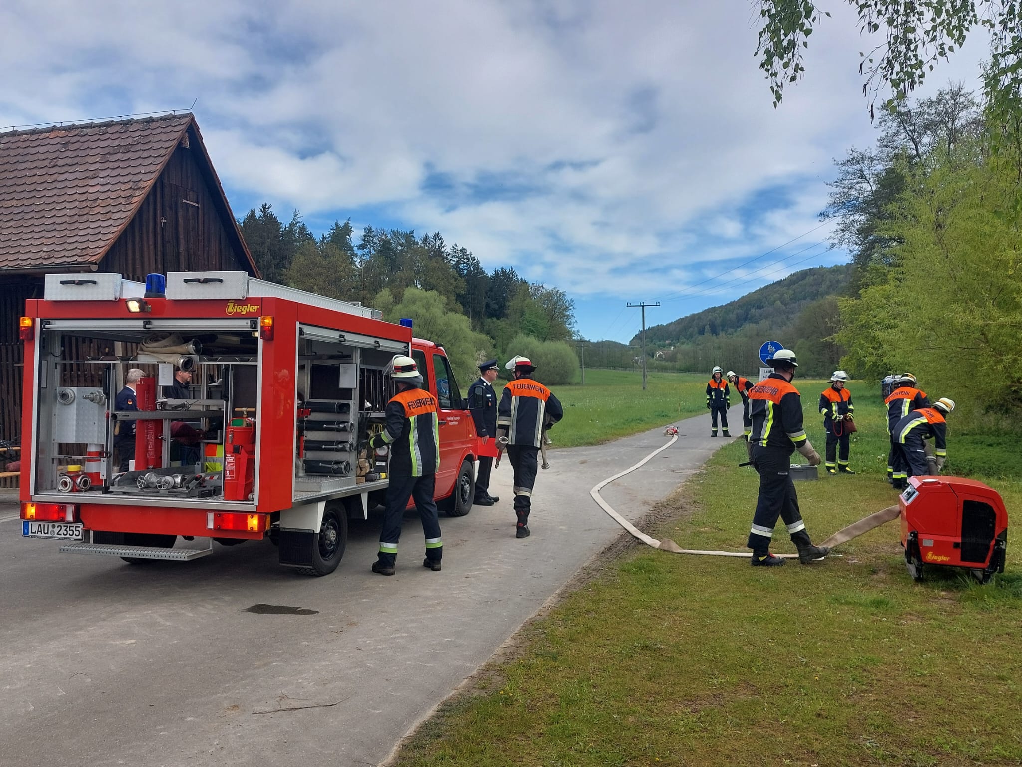 Aspertshofen (DB1) - Am Sonntag, den 28. April 2024, traten drei Gruppen der Freiwilligen Feuerwehr Aspertshofen und Stöppach zur Leistungsprüfung "Die Gruppe im Löscheinsatz" an.
