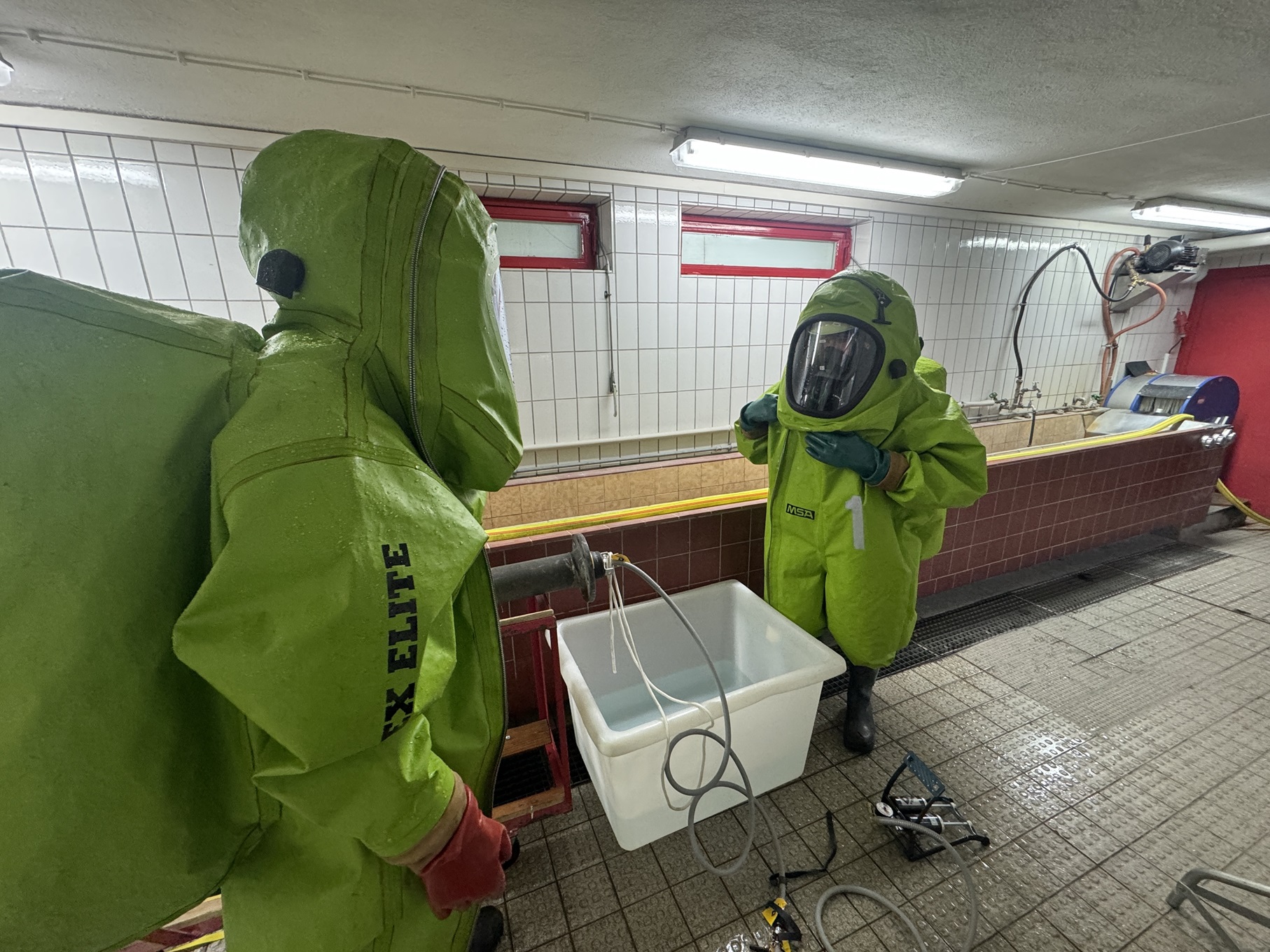 Am Abschlusssamstag wurde zunächst auf das Thema Dekontamination eingegangen, da der CSA-Träger erst von Verunreinigungen gesäubert werden muss, bevor er wieder entkleidet werden kann. Auch dieser Schritt ist sehr arbeits-, material- und personalintensiv.