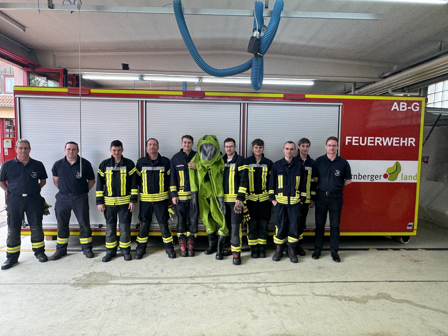 7 Feuerwehrleute der Feuerwehren der Stadt Altdorf und der Gemeinde Feucht nahmen erfolgreich an der Fortbildung zum Träger für Chemikalienschutzanzüge ( CSA ) teil. Dieser Lehrgang ist als Zusatzausbildung für Atemschutzgeräteträger konzipiert und vermittelt den Umgang mit dieser speziellen Schutzausrüstung für Einsätze mit gefährlichen Stoffen und Gütern.