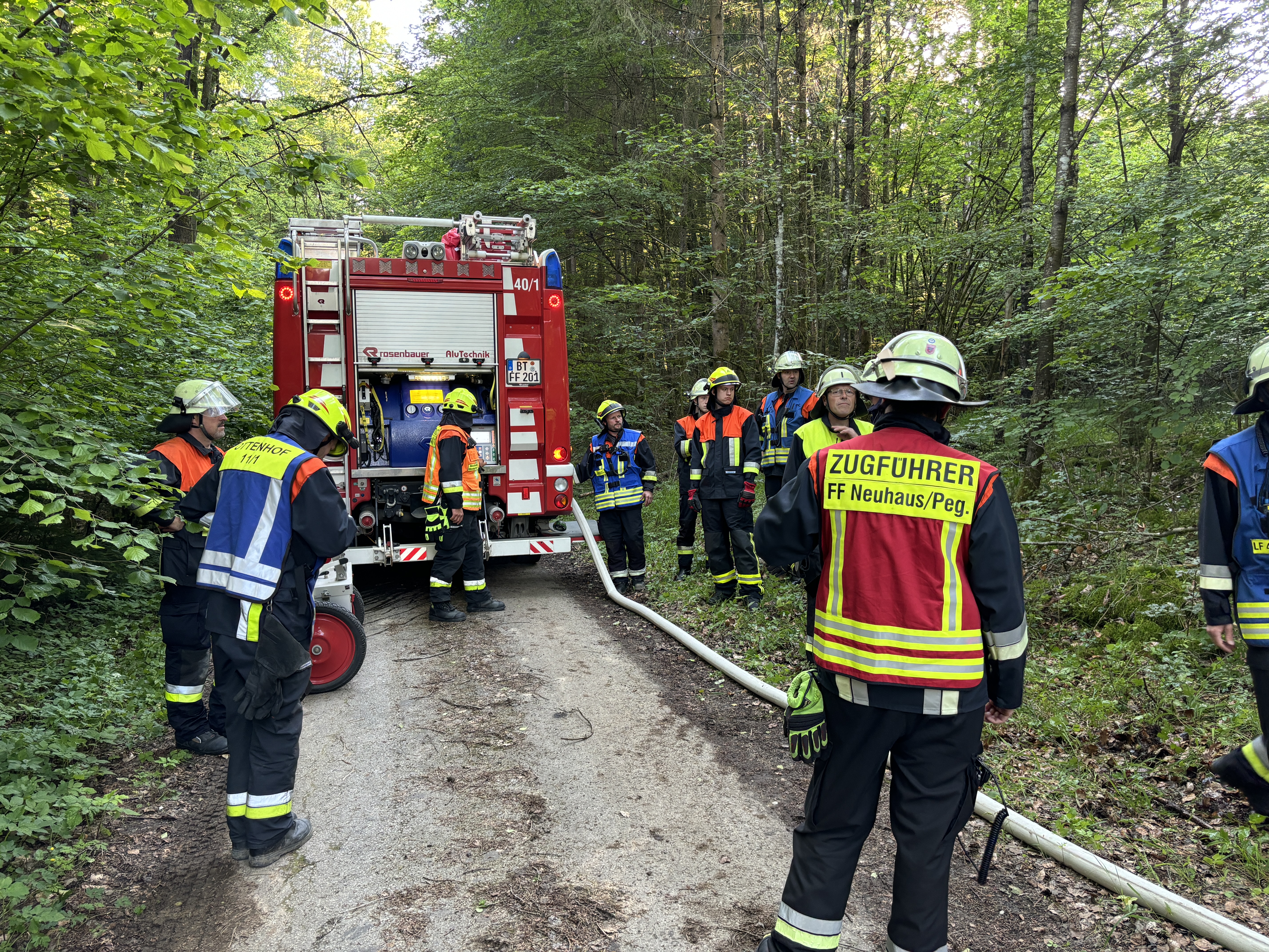 Höfen (DB 1) - Am 07. Juni fand im Schuztbereich der FF Höfen eine Waldbrandübung statt. An dieser Übung haben die Feuerwehren Höfen, Neuhaus/Peg., Plech und Ottenhof mit ca. 60 Kameraden/-innen teilgenommen.