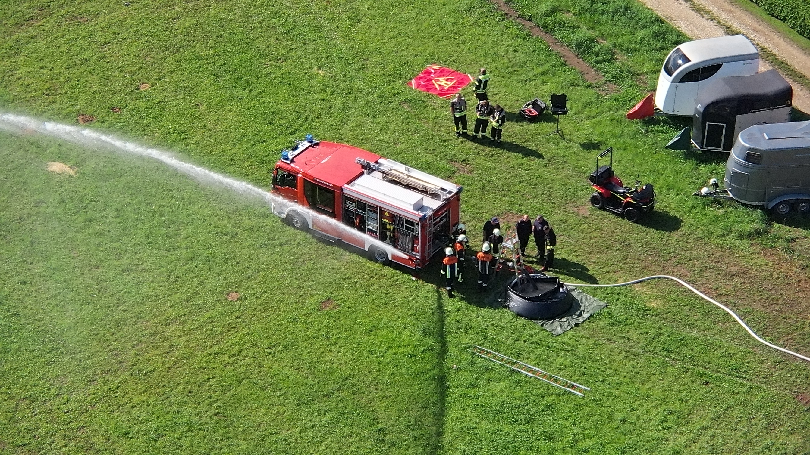 Dieses Wissen wurde dann in einer Theorie- & Praxisprüfung unter den Wachsam Augen von KBI Florian Bayer, KBM Sven Burger sowie den Kommandanten der Teilnehmenden Wehren abgeprüft. In der praktischen Prüfung mussten die Kameradinnen und Kameraden eine lange Schlauchleitung mit Wasserentnahme und Wasserführung von der Schwarzach bis nach Westhaid aufbauen und betreiben und somit ihr erlentes Wissen auch in der Praxis umsetzen.