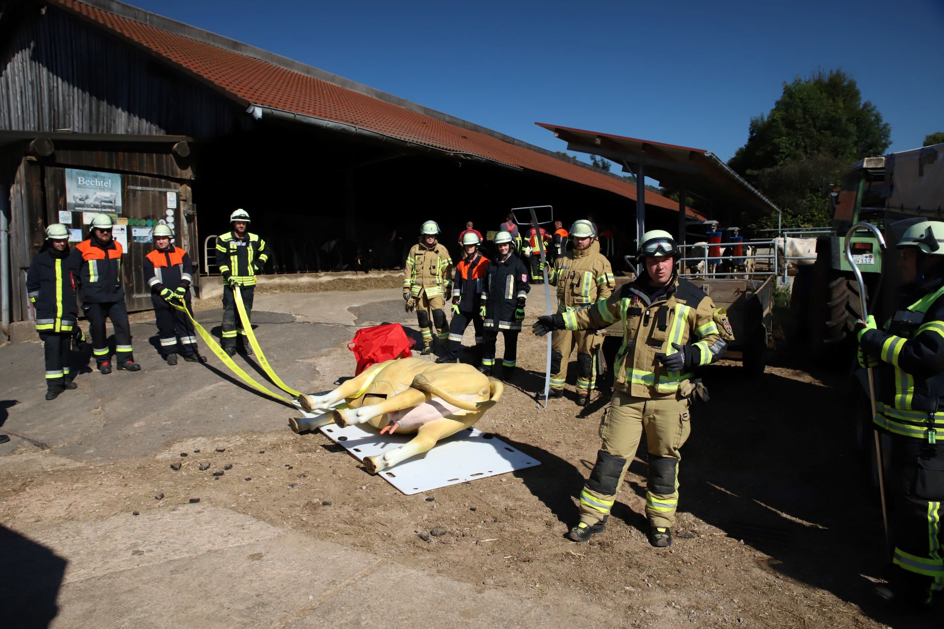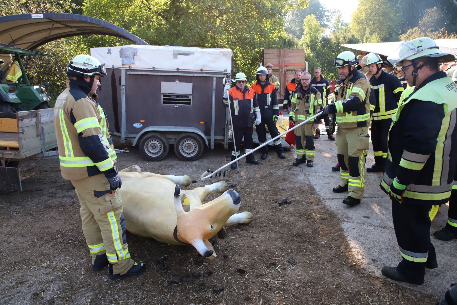Einsätze mit Tieren stellen Feuerwehren oft vor Herausforderungen, denn oft handeln und reagieren diese nicht so, wie man es beispielsweise bei Menschen erwarten würde. Deutlich anspruchsvoller wird es dann noch, wenn es sich um die Rettung eines Großtieres, wie beispielsweise eines Rindes oder eines Pferdes handelt. Hier spielt neben den enormen Kräften auch noch das Gewicht der Tiere eine wesentliche Rolle und so kommen hier nicht selten Spezialgeräte zum Einsatz.