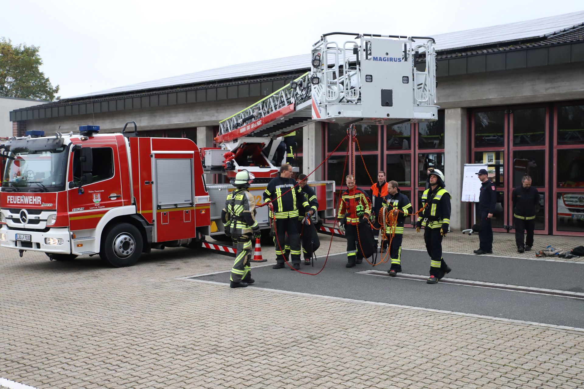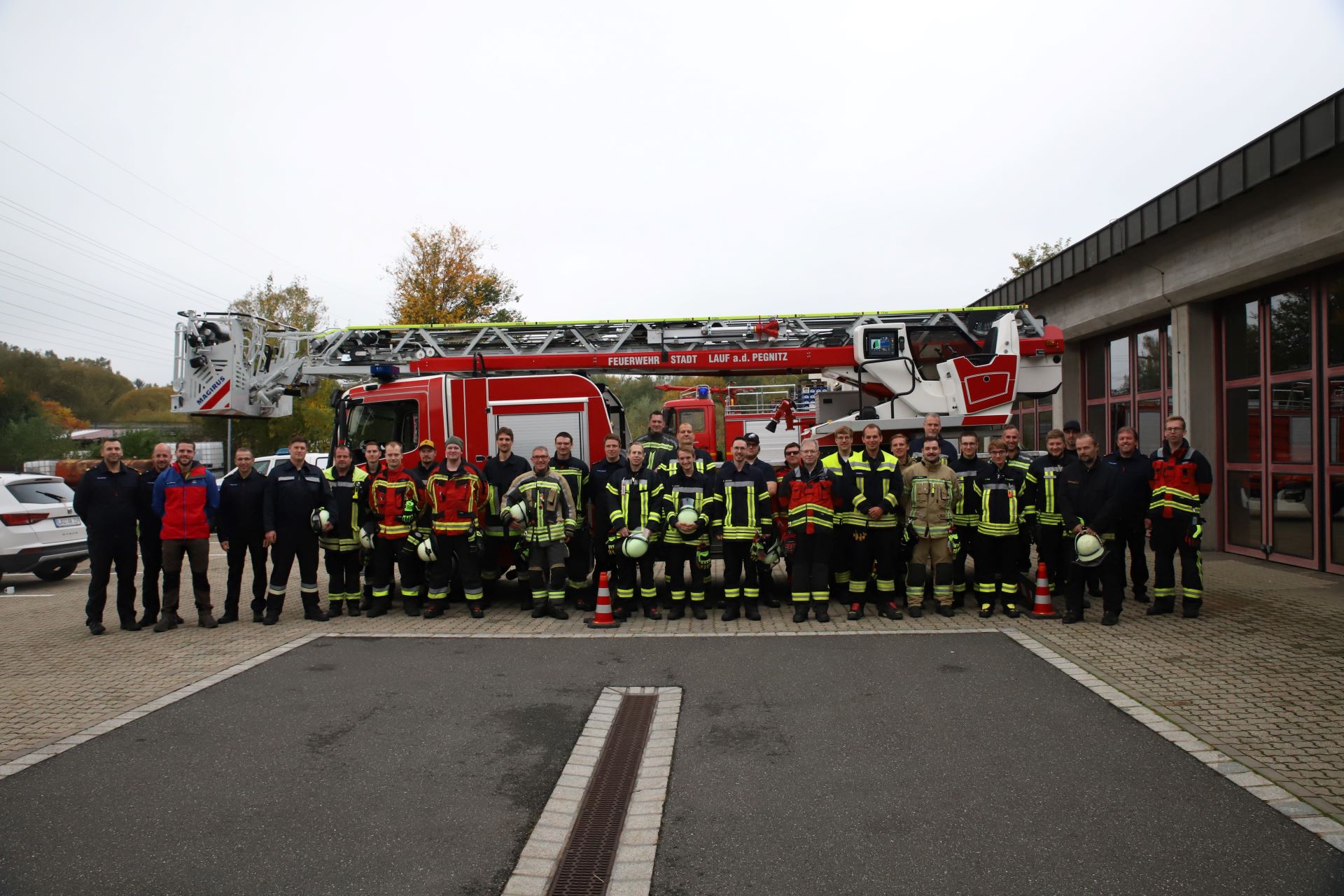 Am 19. Oktober trafen sich deshalb in Lauf a. d. Peg. 26 Teilnehmerinnen und Teilnehmer aus Feuerwehren im gesamten Landkreis im Gerätehaus der Feuerwehr Lauf a. d. Peg. um gemeinsam zu üben. In ihrer Begrüßung dankten Kreisbrandinspektor Oliver Heinecke und Kreisbrandmeister Sven Burger sowohl den Teilnehmerinnen und Teilnehmern, die sich an einem Samstag Zeit für diese zeitintensive Ausbildung nahmen, als auch dem Ausbildungsteam des Fachbereichs, das wieder einen gelungenen und abwechslungsreichen Ausbildungstag auf die Beine gestellt hatte. Auch der Feuerwehr Lauf a. d. Peg., die ihr Gerätehaus zur Verfügung stellte, dankten sie herzlich.