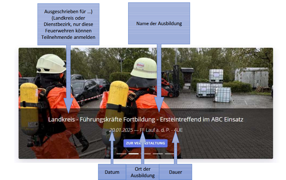 Die Anmeldung zu den Lehrgängen erfolgt auch weiterhin durch die Kommandanten der Feuerwehren, künftig ebenfalls über das Veranstaltungsportal.