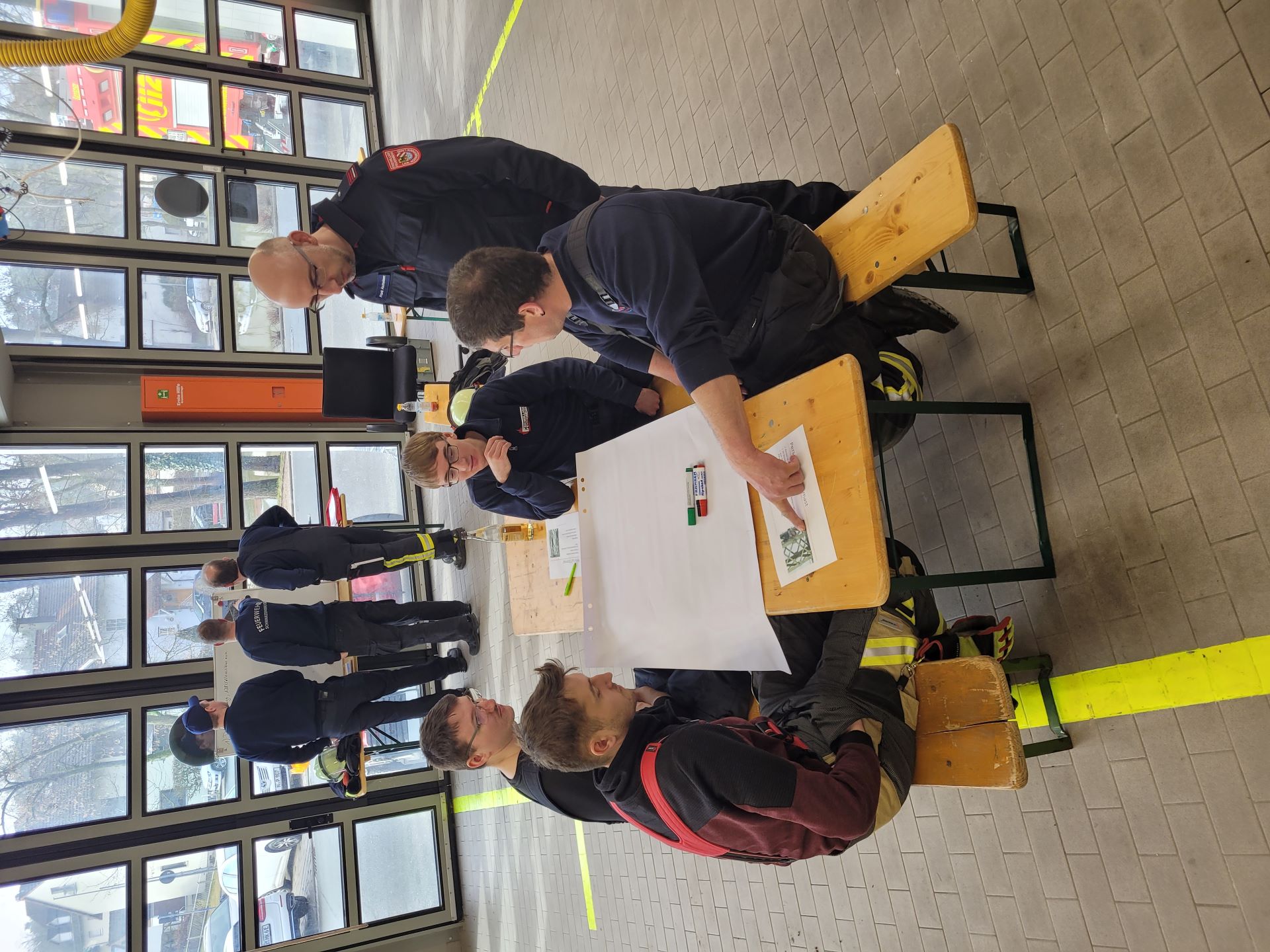 Im Anschluss behandelten die Ausbilder noch Fallbeispiele in Gruppenarbeit. Drei Gruppen haben ausgearbeitet, welche Maßnahmen in den folgenden Situationen erforderlich sind: