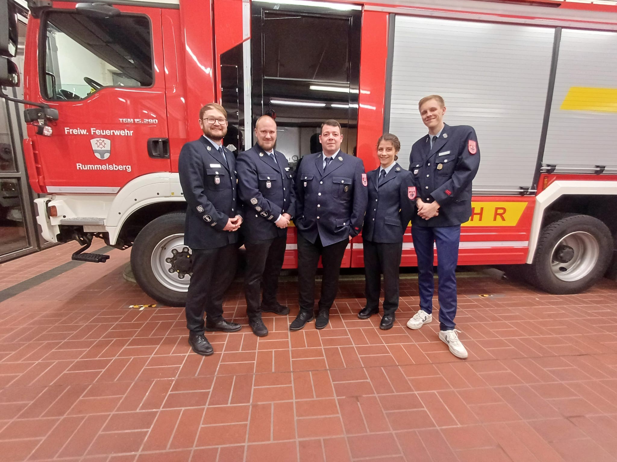 Am Ende des Abends standen außerdem noch Neuwahlen an: Bereits im Vorfeld hatten die beiden Vorsitzenden aus persönlichen Gründen ihren Rücktritt erklärt. Ebenfalls trat der Schriftführer zurück, er war im letzten Jahr zum stellvertretenden Kommandanten gewählt worden und hatte damit ein Doppelamt inne. Als erster Vorsitzender wurde Marko Gövert, als sein Stellvertreter Lukas Veigel und als neue Schriftführerin Melanie Hagspiel gewählt. Der Kassenwart Moritz Grothusen und die beiden Kommandanten Stefan Döbereiner und René Altschäffel hießen die Neuen herzlich Willkommen im Vorstand.