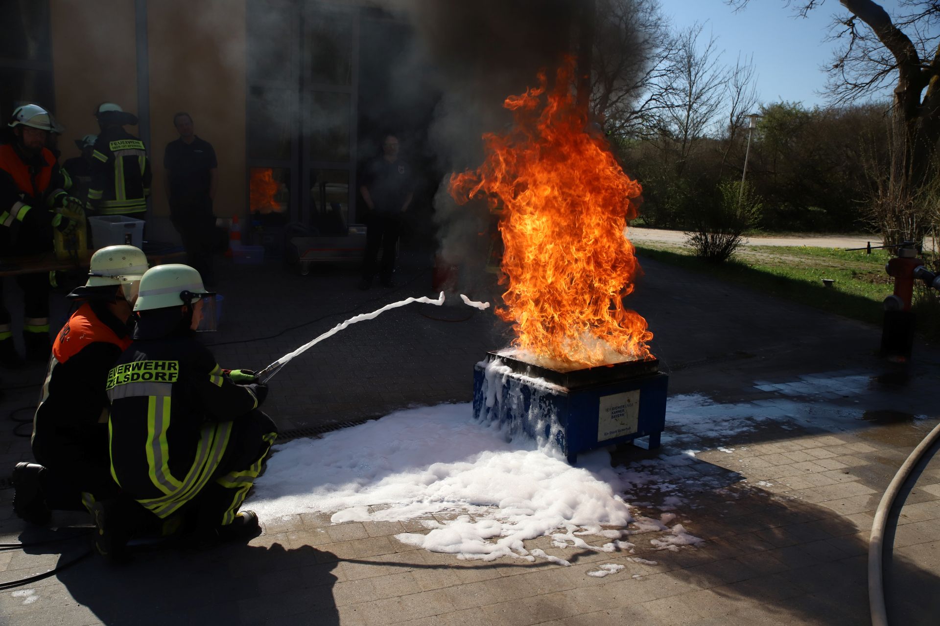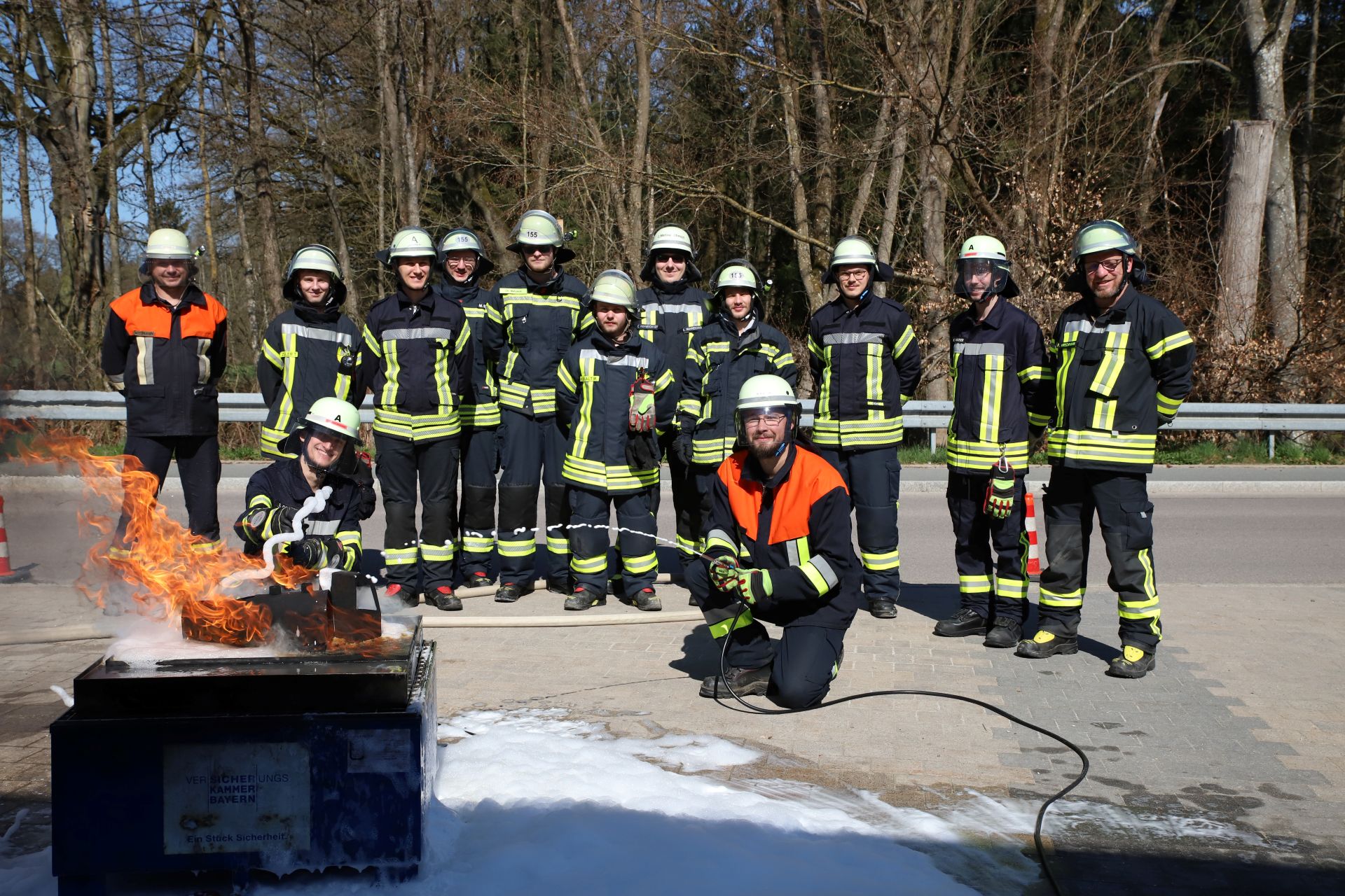 In einem kurzen Theorieteil wurden Grundlagen wie Einsatzgrundsätze, die verschiedenen Schaumarten, Wege diese aufzubringen, Einsatztaktiken und die verschiedenen Einflussfaktoren beim Einsatz von Schaum als Löschmittel wieder in Erinnerung gerufen, bevor es zur praktischen Ausbildung ging.