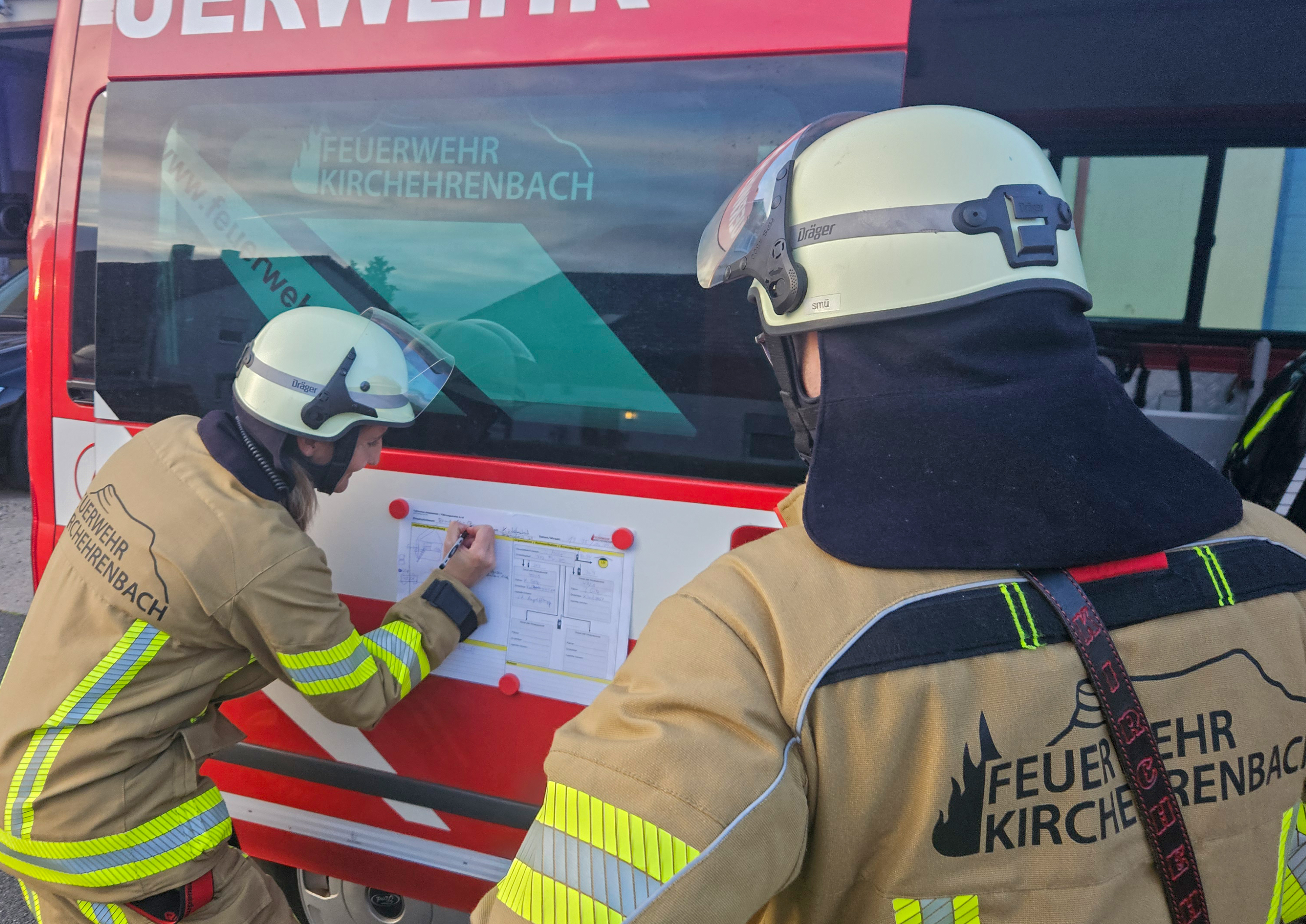Weil dieses Szenario oftmals standardmäßiger Ausgangspunkt innerhalb der Kirchehrenbacher Aus- und Fortbildung ist und alle nötigen Bereiche abdeckt, fragte man im Nachbarlandkreis an, ob eine Durchführung möglich wäre. Zur Abnahme der Leistungsprüfung waren dann am Mittwoch aus dem Nürnberger Land extra Kreisbrandinspektor Thorsten Brunner und die Kreisbrandmeister Roland Gensch, Martin Knorr, Thomas Pöllot sowie Schiedsrichter Manuel Dümler gekommen. Sie bestätigten den Teilnehmerinnen und Teilnehmern nach den beiden Durchgängen – die Besatzungen tauschen die Fahrzeuge einmal – eine saubere und konzentrierte Arbeit.