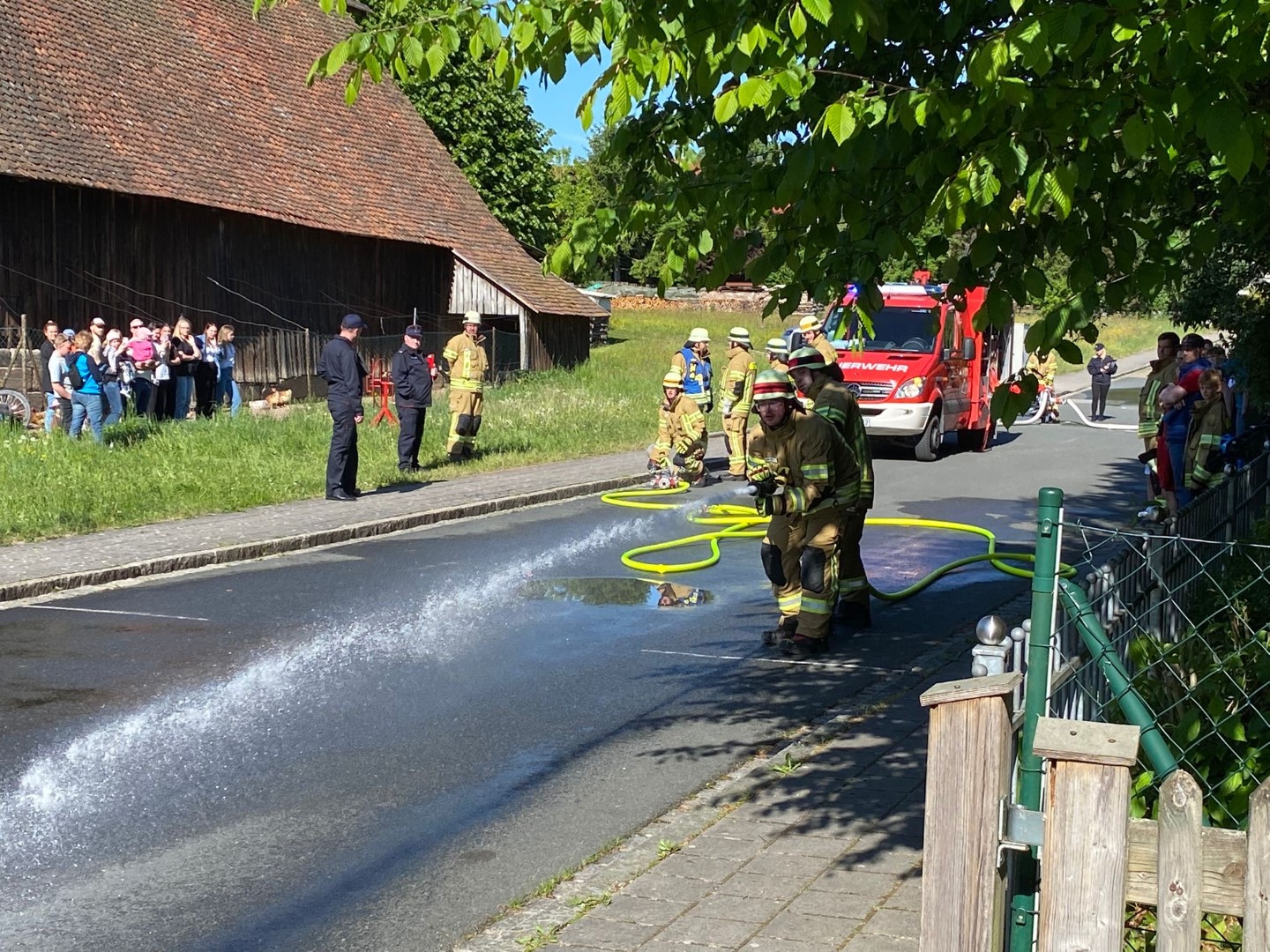 Lindelburg (DB3) - Am Samstag den 10.05.2025 legten 15 Kameradinnen und Kameraden der Feuerwehr Lindelburg die Leistungsprüfung “Die Gruppe im Löscheinsatz” unter den Augen der Kreisbrandinspektion, den Schiedsrichtern und des federführenden Kommandanten der Gemeinde Schwarzenbruck Christian Eckstein ab.