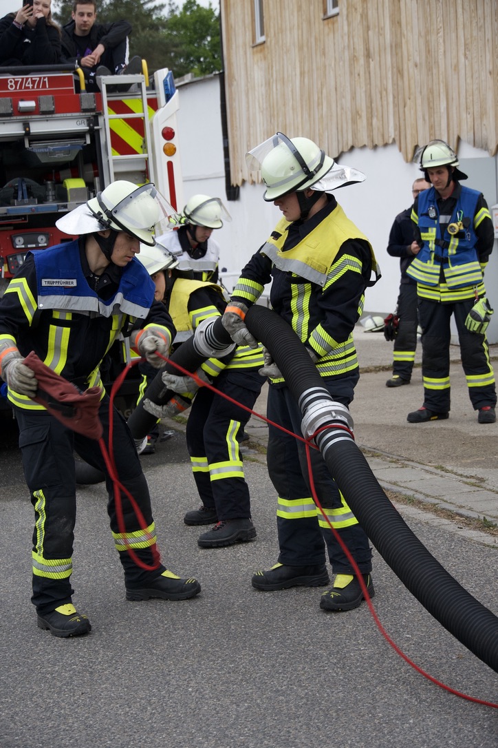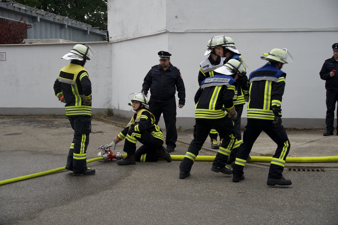 Angenommen wurde ein Brand in einem Nebengebäude, wobei ein Löschaufbau mit insgesamt drei C-Rohren erstellt werden musste. Der Schlauchtrupp übernahm dabei die Verkehrsabsicherung, der Wassertrupp baute die Wasserversorgung auf. Der Angriffstrupp übernahm den Erstangriff. Als letzte Aufgabe galt es für die Wasser- und Schlauchtrupps noch eine Saugleitung zu kuppeln.
