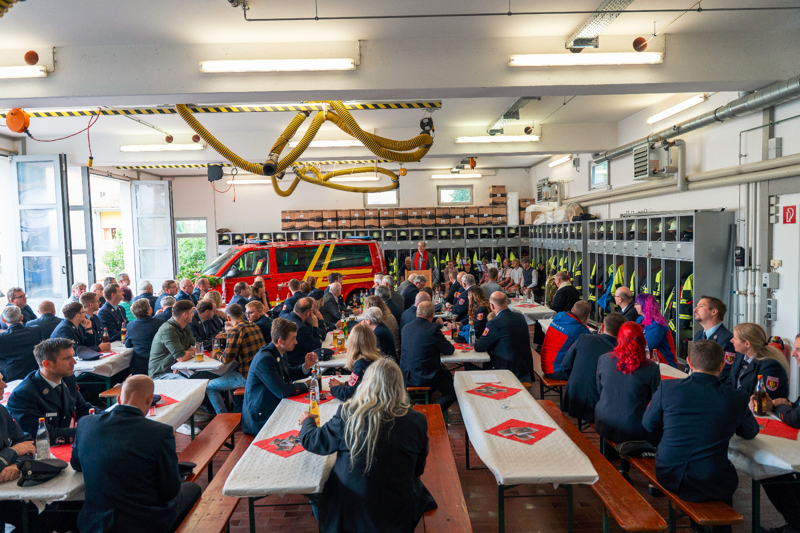 Zum Auftakt der Feierlichkeiten übernahmen die beiden Geistlichen – katholisch und evangelisch – das erste Wort und die Segnung des Fahrzeugs. In ihren Worten baten sie um göttlichen Schutz für alle Einsatzkräfte und unterstrichen die Bedeutung des ehrenamtlichen Engagements.