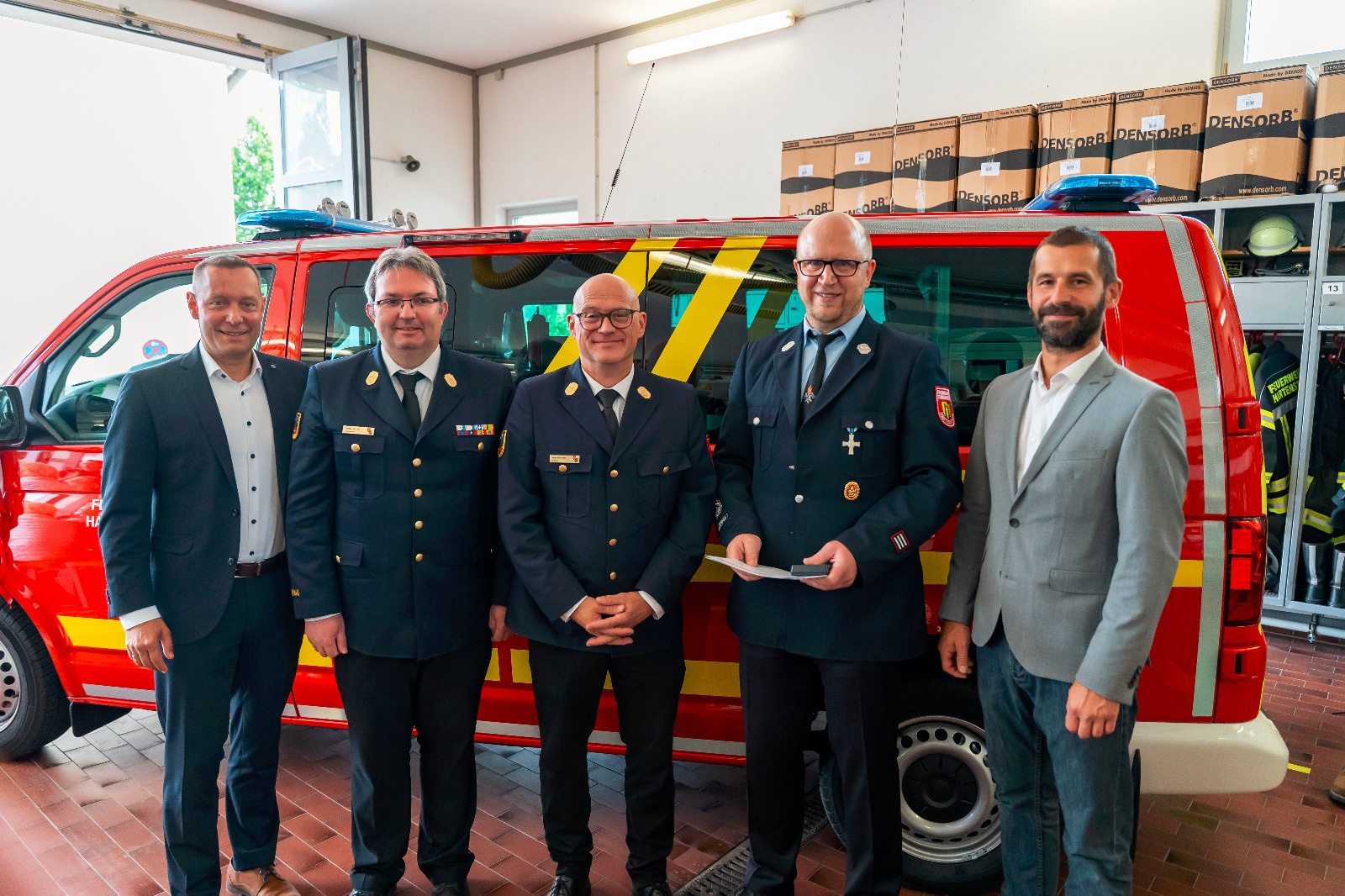 Kreisbrandrat Holger Herrmann überbrachte die Glückwünsche der gesamten Kreisbrandinspektion und betonte, dass das Fahrzeug exakt auf die Anforderungen der Wehr abgestimmt sei. Eine besondere Würdigung hatte er ebenfalls im Gepäck: Jürgen Steger wurde für seine langjährige und verdienstvolle Tätigkeit – unter anderem als Jugendwart, stellvertretender Kommandant, Kommandant sowie federführender Kommandant – mit dem Silbernen Ehrenkreuz des Landesfeuerwehrverbands ausgezeichnet.
