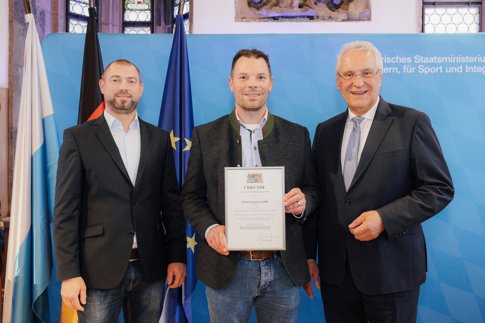 Unter den 17 Betrieben war mit dem Familienunternehmen Sebald Zement GmbH auch ein Betrieb aus dem Nürnberger Land vertreten. Die Auszeichnung nahm Staatsminister Joachim Herrmann im Rahmen des jährlichen Blaulichtempfangs persönlich vor.