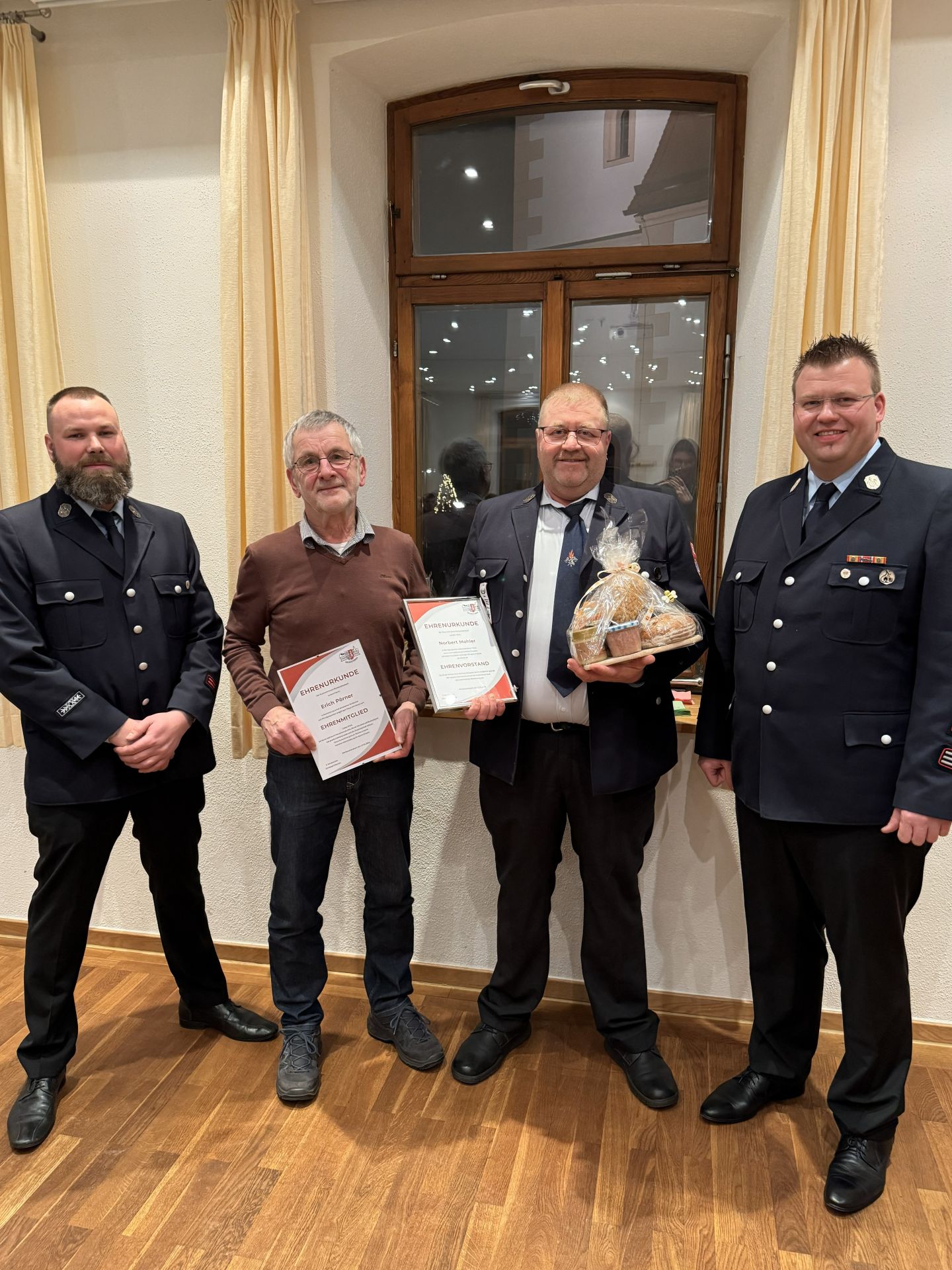 Engagement und Wertschätzung wurden an diesem Abend großgeschrieben. So wurden Norbert Mohler und Erich Pörner im Anschluss für Ihre besonderen Verdienste am Vereinsleben zum Ehrenvorstand bzw. Ehrenmitglied ernannt. Jürgen Schurath gibt sein Amt als Atemschutzwart ab und erhielt als Dankeschön für seine Leistung ein Abschiedsgeschenk.