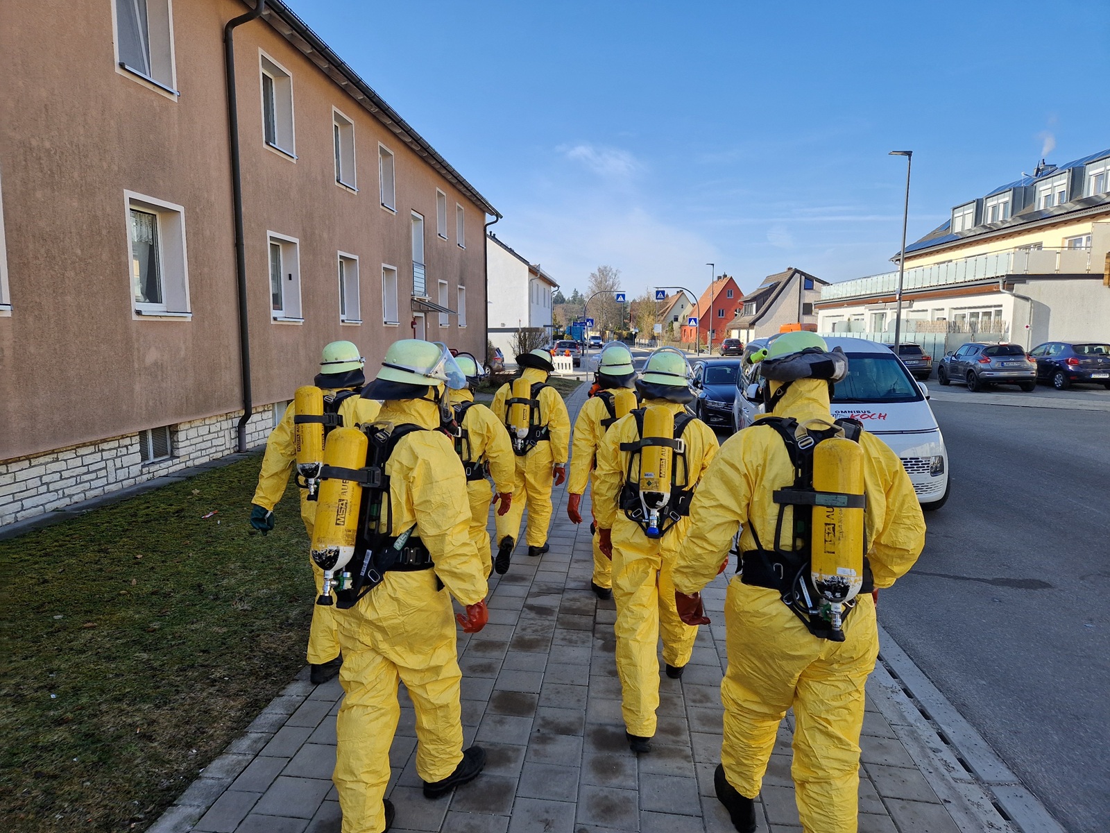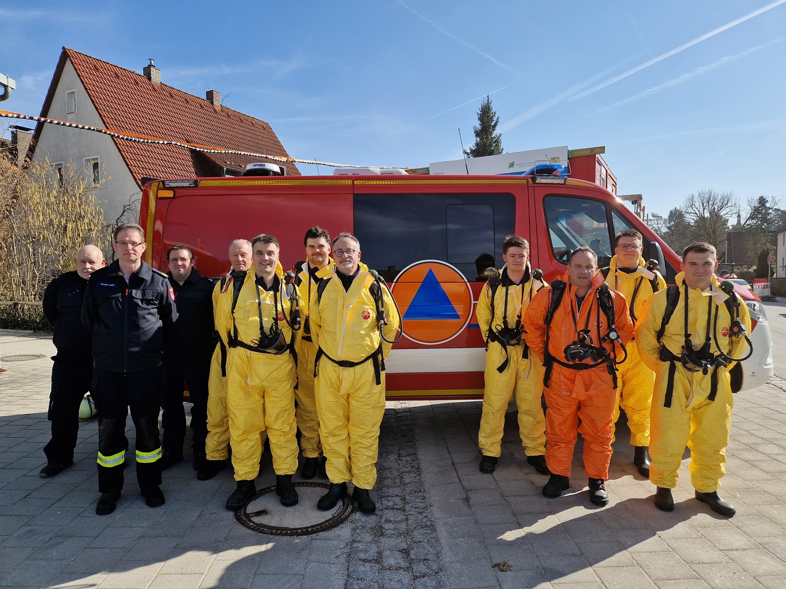 Im Rahmen der Indienststellung des neuen CBRN-Erkundungsfahrzeugs nahmen 8 Feuerwehrleute der Feuerwehr Schwarzenbruck am Lehrgang „Träger von Körperschutz Form 2 im ABC-Einsatz“ teil. Die CBRN-Erkundungsfahrzeuge werden im Rahmen einer Bundesbeschaffung an alle Landkreise in Bayern ausgeliefert.