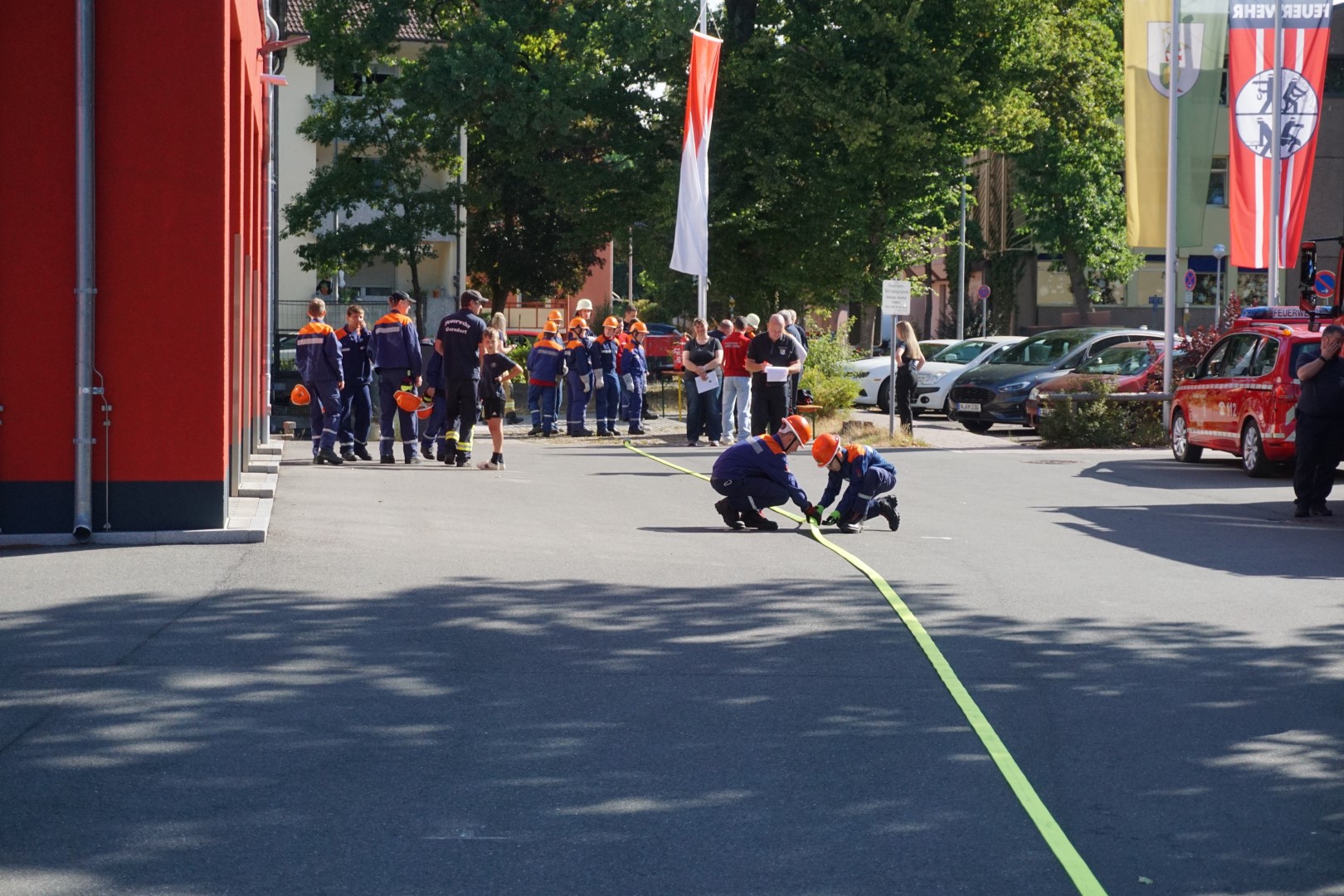 Unter den Augen der Schiedsrichter, aber auch Vertretern der Kreisbrandinspektion, zeigten die Jugendlichen auch bei dieser Abnahme wieder, dass es um die Ausbildung des Feuerwehrnachwuchses sehr gut bestellt ist. Dafür und für ihren wichtigen Beitrag in der Nachwuchsarbeit dankten den Jugendwartinnen und Jugendwarten neben den zuständigen Kreisbrandmeistern auch Kreisbrandrat Holger Herrmann und die Kreisbrandinspektoren Thorsten Brunner, Oliver Heinecke und Florian Bayer, die sich bei den Abnahmen der Jugendflamme in ihren Dienstbezirken selbst ein Bild vom Ausbildungsstand machten. Auch den Jugendlichen dankten sie für ihre Bereitschaft sich in ihrer Freizeit für andere einzusetzen und sich auf das Ehrenamt in der Freiwilligen Feuerwehr vorzubereiten. Ihr Dank galt auch allen Schiedsrichtern und Helfern sowie den gastgebenden Feuerwehren für ihre Unterstützung.