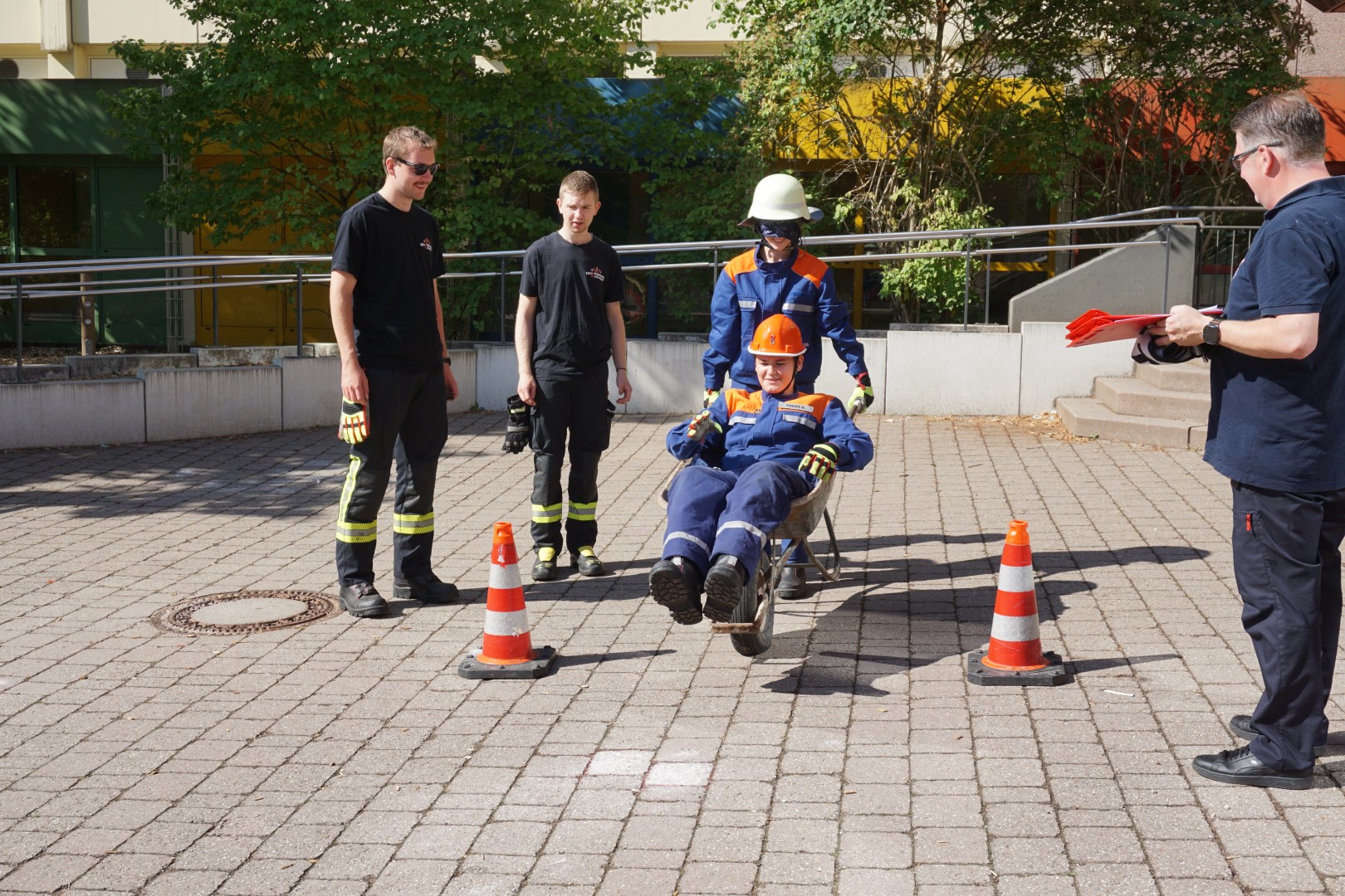 Für die Stufe 2 der Jugendflamme, bei der 82 Jugendliche antraten, mussten die Inbetriebnahme eines Unterflurhydranten demonstriert, eine Steckleiter korrekt aufgestellt und Saugschläuche richtig gekuppelt werden. Außerdem zählten Fahrzeug- und Gerätekunde, der Aufbau einer korrekten Verkehrsabsicherung sowie als Teamaufgabe ein Parkour mit einer Schubkare zu den Aufgaben dieser Stufe.