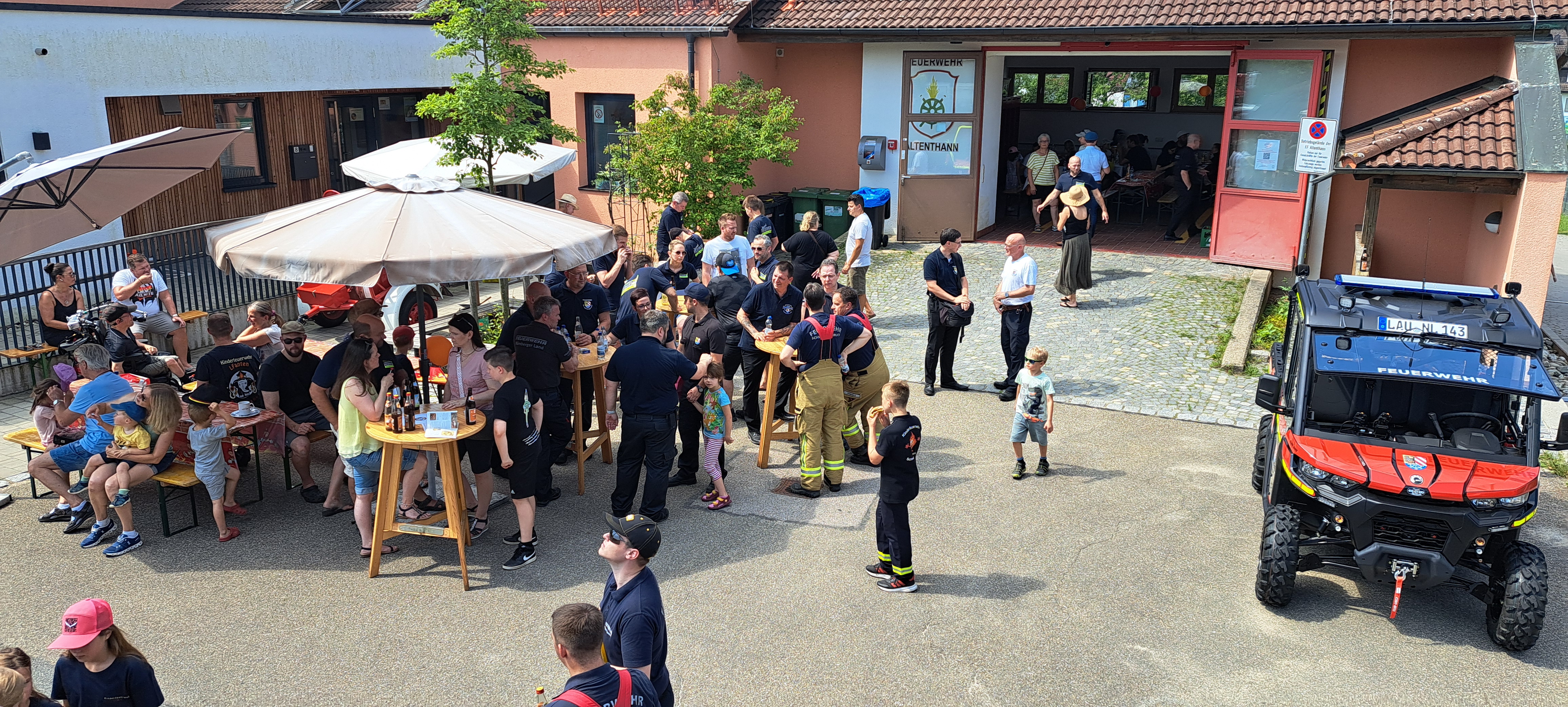 Die Feuerwehr aus Schwarzenbruck übernahm die Patenschaft und die Kinderfeuerwehr brachte als Geschenk ein Erste-Hilfe-Set und Süßigkeiten mit. Der Fachberater für die Kinderfeuerwehren, Marco Back überreichte die offizielle Gründungsurkunde. Die Leiterin Nadine Hiemeyer mit ihrem Team Susi Brückner und Oliver Radtke bedankten sich bei allen Spendern für die großzügige Unterstützung bei der Beschaffung der Hosen und bei Allen die zum Gelingen der Feier beigetragen haben. Ein besonderes Dankeschön für die Sachspenden gilt dem Leiter des THW Lauf Marcus Sperber für die T-Shirts Landgasthof, dem Gasthaus "Weißes Kreuz" Altenthann für die Bratwüste, dem Backhaus Fuchs/Woitinek aus Altdorf für die Brötchen und Getränke Reither aus Oberferrieden für die Getränke.