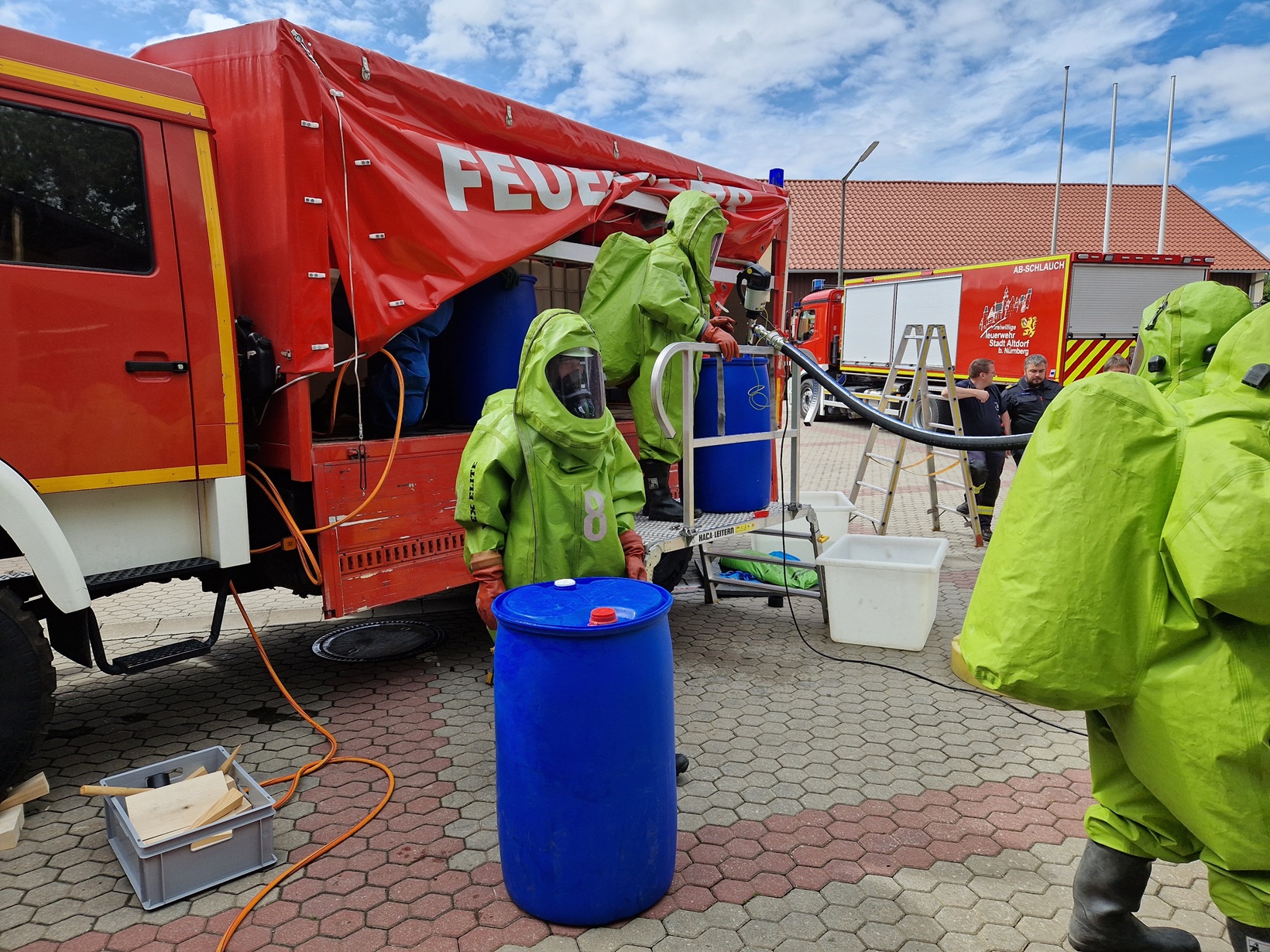 7 Feuerwehrleute der Feuerwehren der Stadt Altdorf und der Gemeinde Feucht nahmen erfolgreich an der Fortbildung zum Träger für Chemikalienschutzanzüge ( CSA ) teil. Dieser Lehrgang ist als Zusatzausbildung für Atemschutzgeräteträger konzipiert und vermittelt den Umgang mit dieser speziellen Schutzausrüstung für Einsätze mit gefährlichen Stoffen und Gütern.