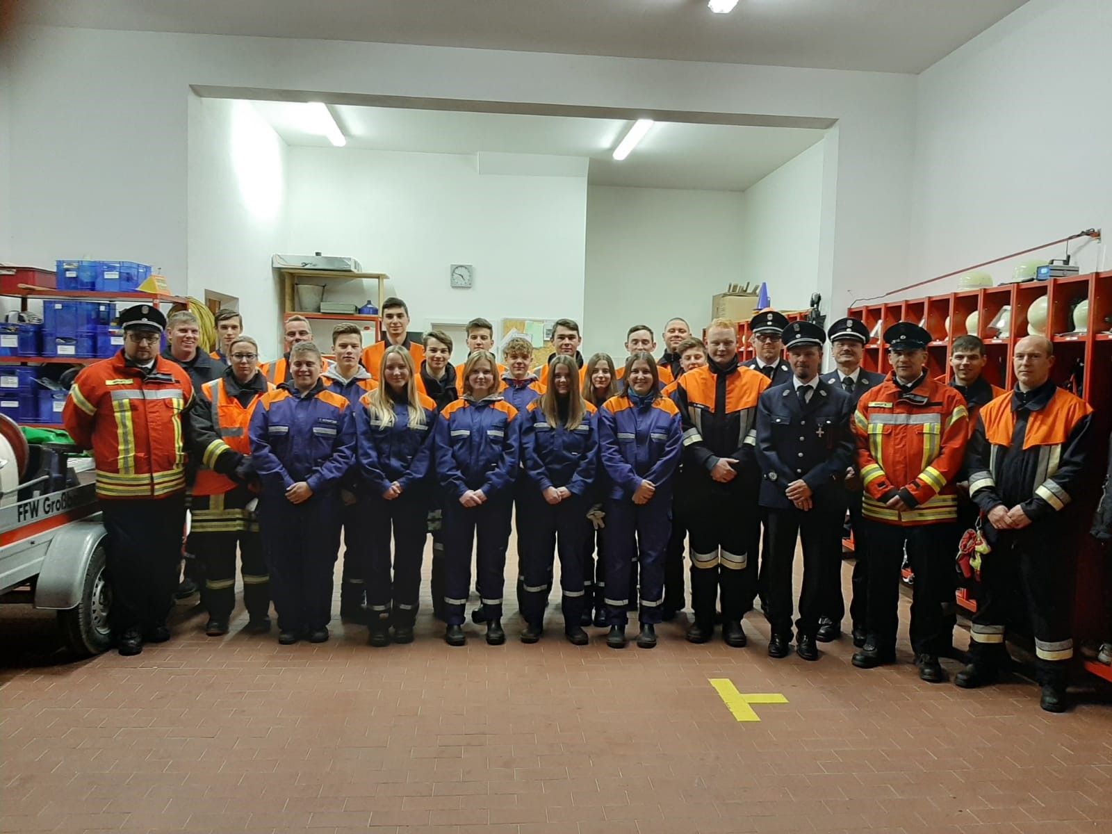 Großbellhofen / Germersberg (DB2) - Am Montag, den 18.11.2019 legten 5 Kameradinnen und 13 Kameraden der Feuerwehren Großbellhofen und Germersberg ihre Prüfung zum Basismodul vom eigens abgehaltenen Lehrgang mit Erfolg ab.