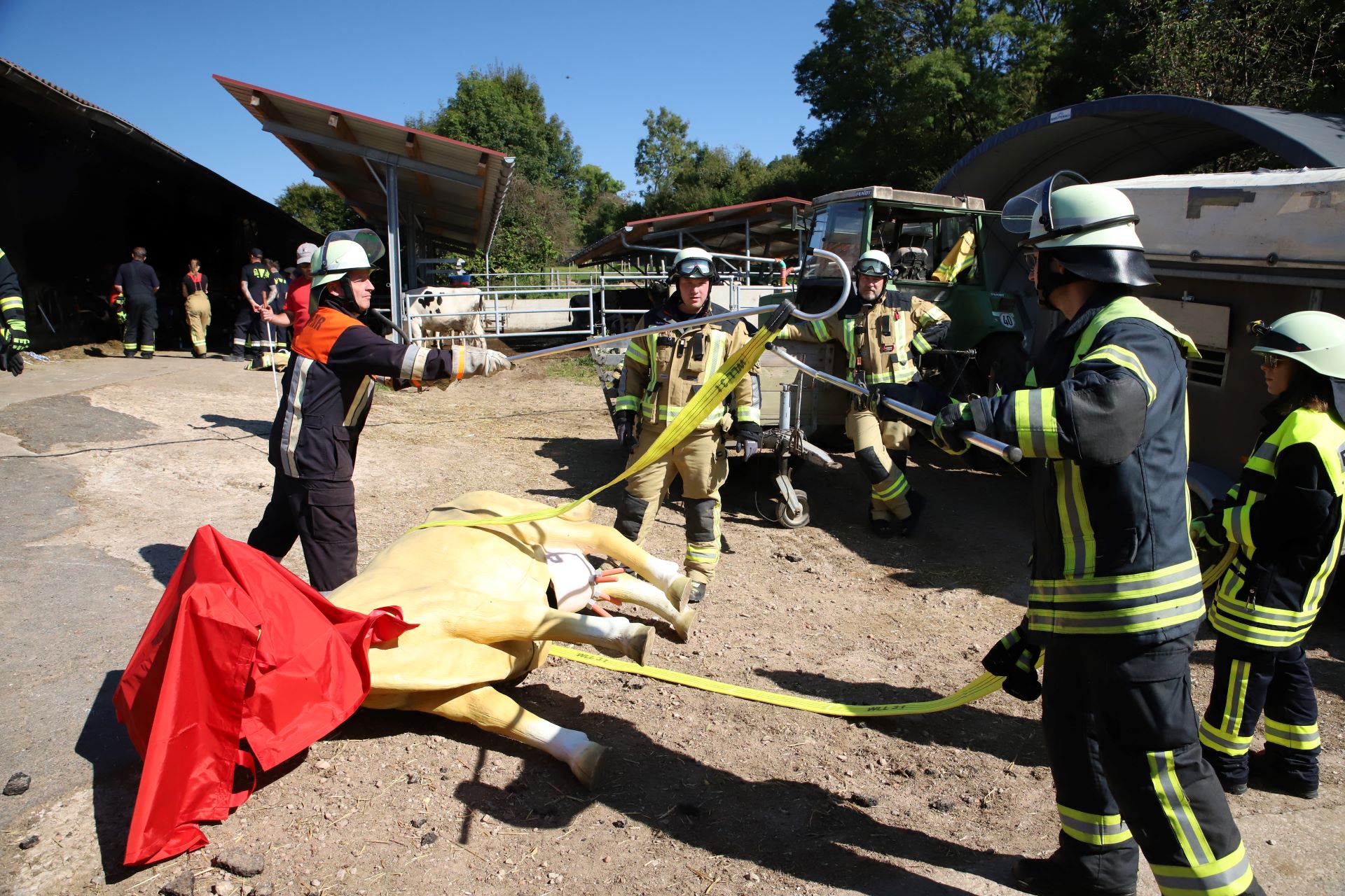 Einsätze mit Tieren stellen Feuerwehren oft vor Herausforderungen, denn oft handeln und reagieren diese nicht so, wie man es beispielsweise bei Menschen erwarten würde. Deutlich anspruchsvoller wird es dann noch, wenn es sich um die Rettung eines Großtieres, wie beispielsweise eines Rindes oder eines Pferdes handelt. Hier spielt neben den enormen Kräften auch noch das Gewicht der Tiere eine wesentliche Rolle und so kommen hier nicht selten Spezialgeräte zum Einsatz.
