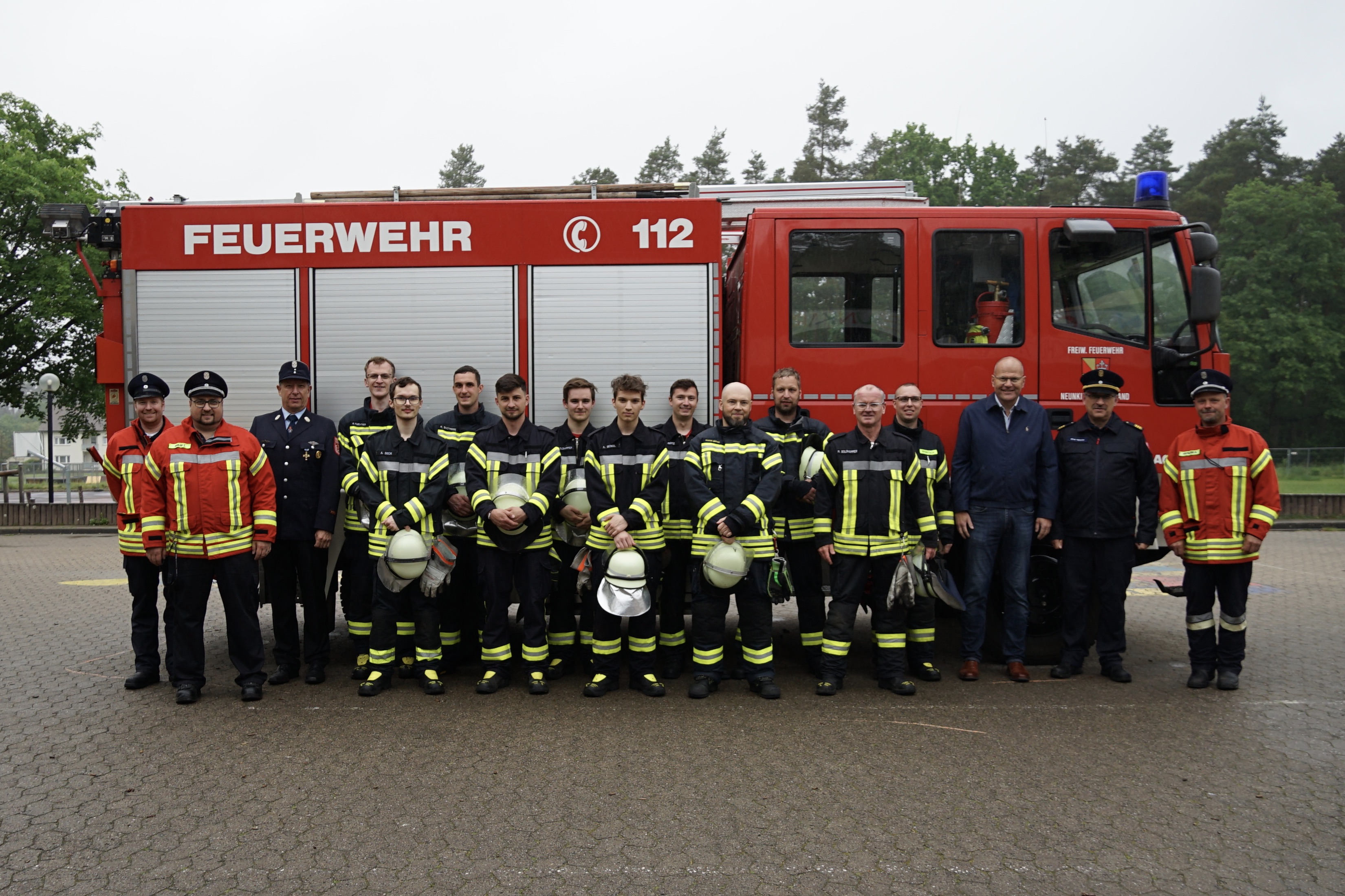 14 Feuerwehrfrauen und -männer aus den Wehren Bullach, Heuchling, Hüttenbach, Ottensoos, Röthenbach, Schwaig und Speikern absolvierten im Rahmen des Mai-Lehrganges erfolgreich die Ausbildung zum Atemschutzgeräteträger.