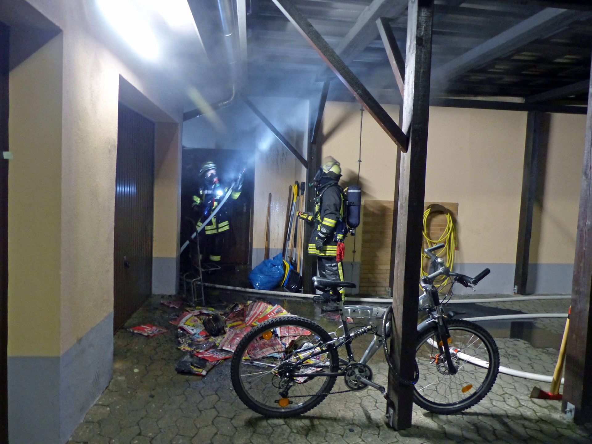 Anfangs musste die Feuerwehr zu zwei ausgelösten Brandmeldeanlagen im Ortsgebiet von Schwarzenbruck ausrücken. Nach einer gründlichen Absuche der Räumlichkeiten mit Hilfe der Wärmebildkamera konnte in beiden Fällen glücklicherweise kein Brand gefunden werden. Beim letzten Einsatz musste die Wehr jedoch besonders schnell Handeln. In einer Garage war Papier in Brand geraten. Der noch kleine Brand konnte durch die Feuerwehr Schwarzenbruck rasch gelöscht werden, so blieb der Schaden gering.