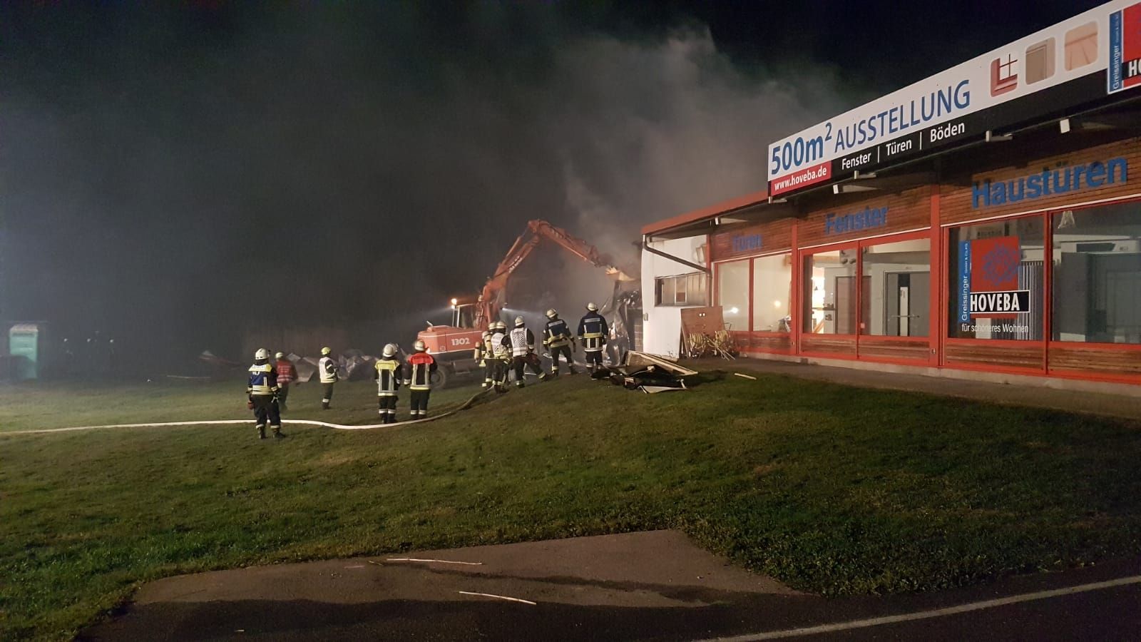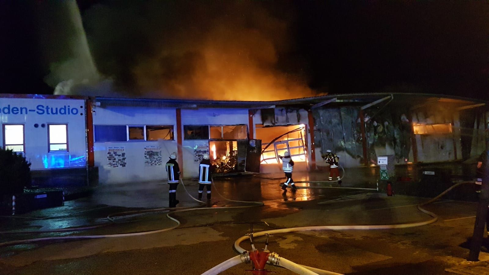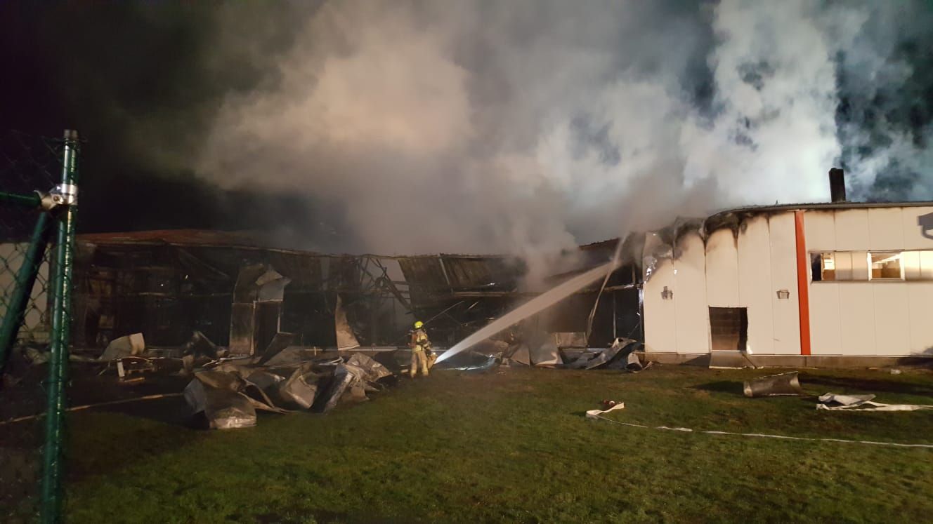 Weigendorf (Lkr. Amberg-Sulzbach) - Am Donnerstag den 29. November 2018 brach in einer Montage- und Lagerhalle eines Fenster- und Türenhändlers ein Feuer aus. Eine Explosion schreckte Anwohner und Angestellte des Unternehmens auf. Innerhalb weniger Minuten stand die gesamte Halle in Vollbrand. Das Bürogebäude und die Ausstellungsräume konnten von den Flammen gerettet werden, die Löscharbeiten in der Halle gestalteten sich aufwändig. Ein Landkreis übergreifender Großeinsatz für über 200 Einsatzkräfte. Es entstand ein Schaden von zirka 2 Millionen Euro.