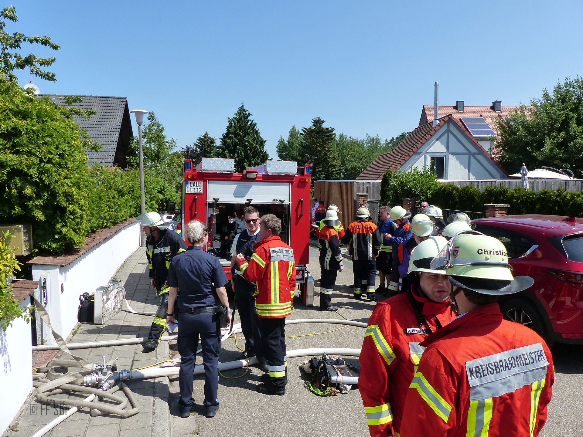 Vor Ort bot sich den Kräften folgende Lage: Bei einem Wohnhaus mit mehreren einzelnen Wohnungen kam es im Erdgeschoss zu einer Explosion. Hierbei wurden mehrere Fensterscheiben, Rollos und Gegenstände aus der Wohnung nach außen gedrückt. Der Bewohner der Wohnung im Erdgeschoss befand sich noch im Gebäude. Alle anderen Personen hatten sich bereits ins Freie gerettet. Durch das Explosionsereignis kam es im Gebäude außerdem zu mehreren Schwelbränden.