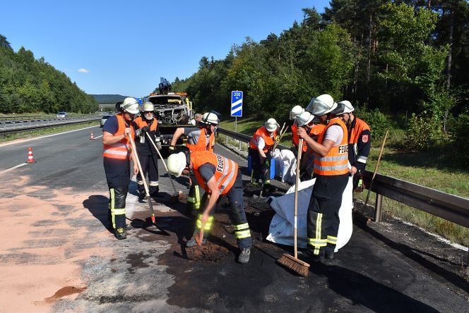 Bei Eintreffen der ersten Einsatzkräfte stand das Fahrzeug bereits in Vollbrand. Die Feuerwehren löschten den Brand, nahmen das mit Betriebsstoffen verunreinigte Löschwasser auf und reinigten die Fahrbahn zunächst grob mit Spezialbindemittel. Die Autobahnmeisterei Fischbach beorderte die Kehrmaschine einer Spezialfirma an die Einsatzstelle und übernahm anschließend die Verkehrsabsicherung, so dass die Feuerwehren nach und nach einrücken konnten. Aufgrund der während der Löscharbeiten eingerichteten Vollsperre kam es zu einem kilometerlangen Rückstau.