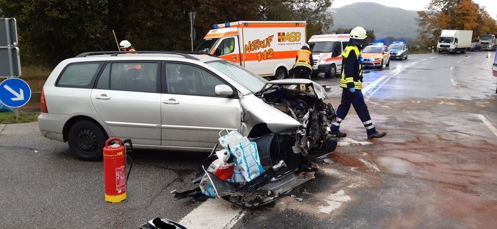 Eschenbach (DB1) - Mit dem Stichwort “Verkehrsunfall PKW, keine Person eingeklemmt” wurden die Einsatzkräfte der Freiwilligen Feuerwehren Hohenstadt und Eschenbach am Dienstag, den 08. Oktober 2019 um die Mittagszeit auf die Staatstraße 2162 zur Abzweigung Eschenbach alarmiert.