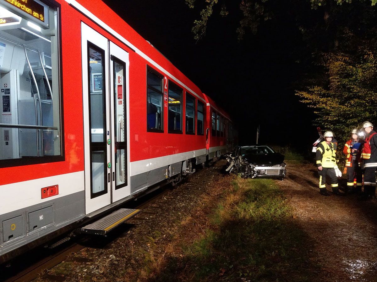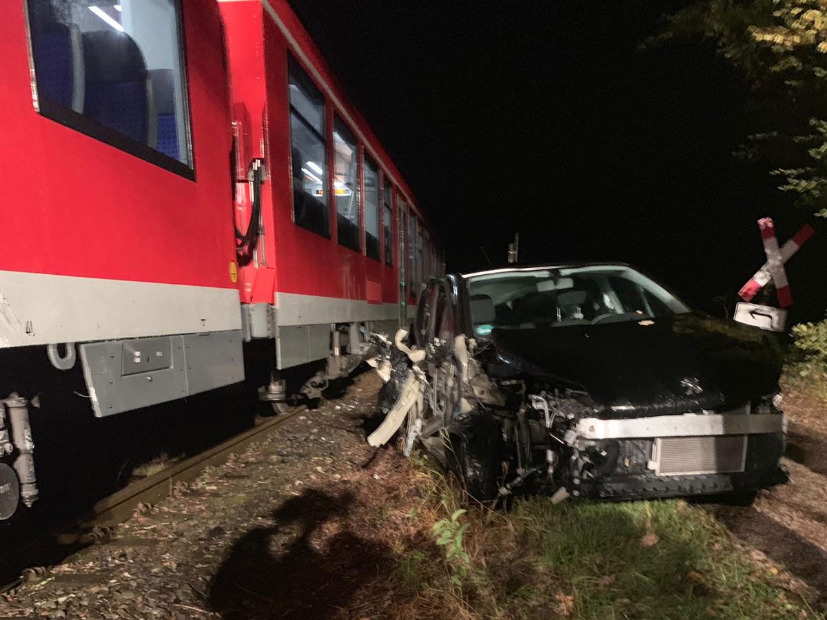Speikern (DB2) - Viel Glück im Unglück hatte am 04. Oktober 2019 ein Autofahrer in Speikern. Sein Auto wurde vom Regionalzug erfasst und mehrere Meter mitgeschleift. Er konnte das Auto glücklicherweise kurz zuvor verlassen. Die Feuerwehren sicherten die Unfallstelle und evakuierten den Zug.